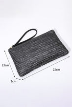 Black Straw Woven Wrist Strap Zipper Large Wallet