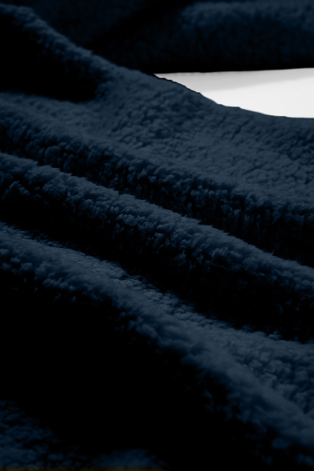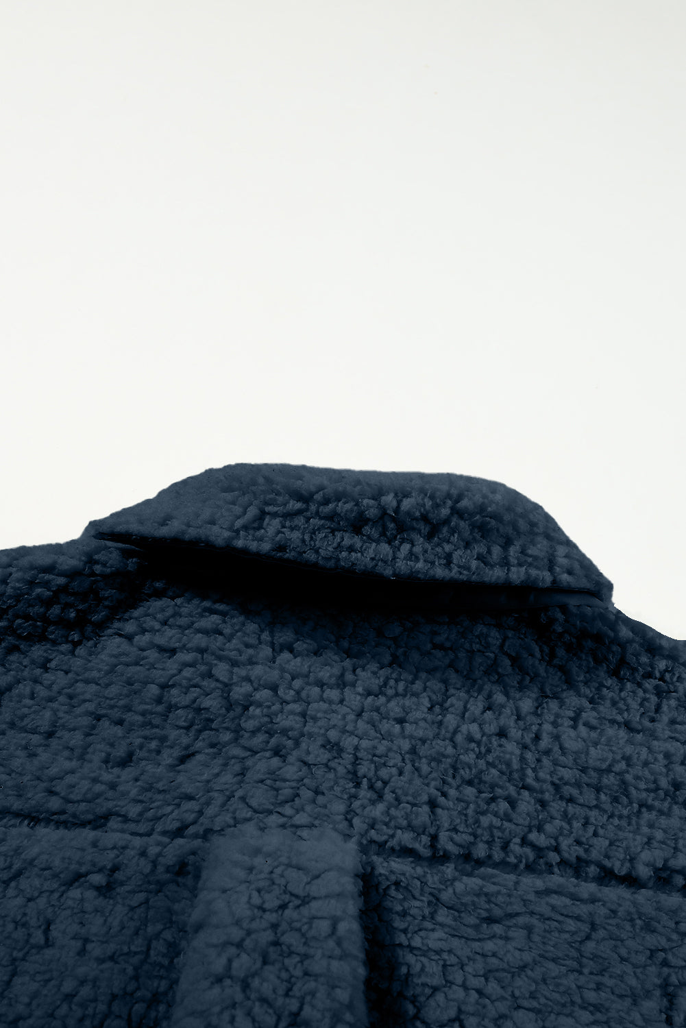 Blue Contrast Flap Pocket Single Breasted Teddy Coat