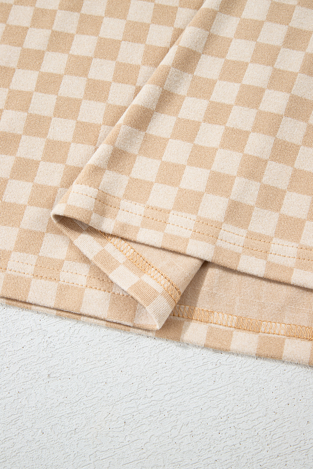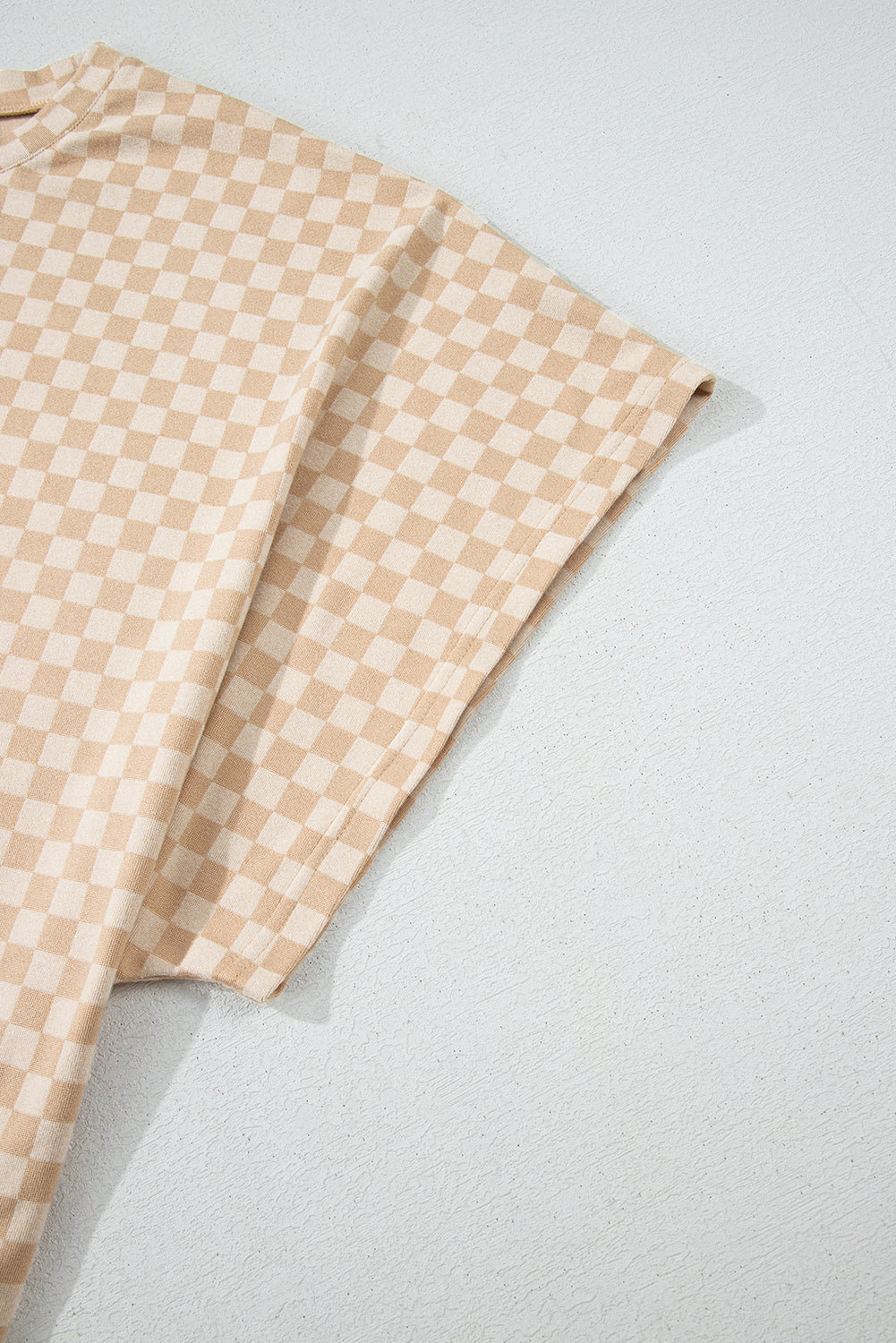 Upgrade your wardrobe with our Khaki Checkerboard Short Batwing Sleeve Round Neck Plus Size T Shirt. Made with high-quality fabric, this shirt offers ultimate comfort and style. The trendy checkerboard design and batwing sleeves add a touch of uniqueness to your outfit. Perfect for any occasion, elevate your fashion game with this stylish t-shirt.