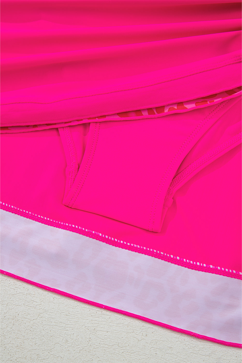 Rose Leopard Drawstring Side Tankini 2pcs Swimsuit