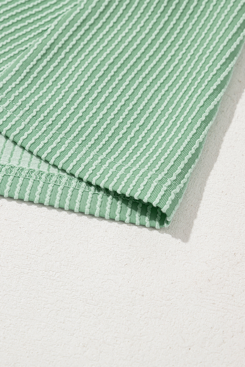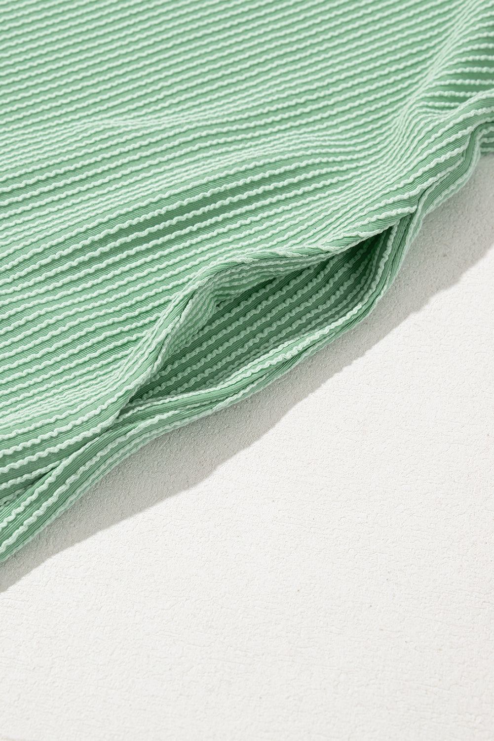 Mint Green Corded Knit Crew Neck Puff Sleeve Shift Mini Dress