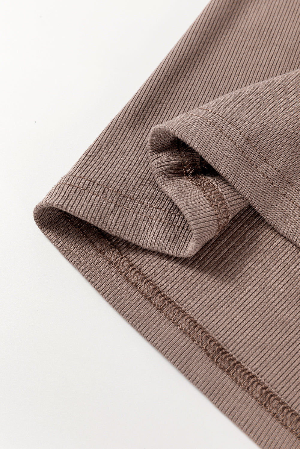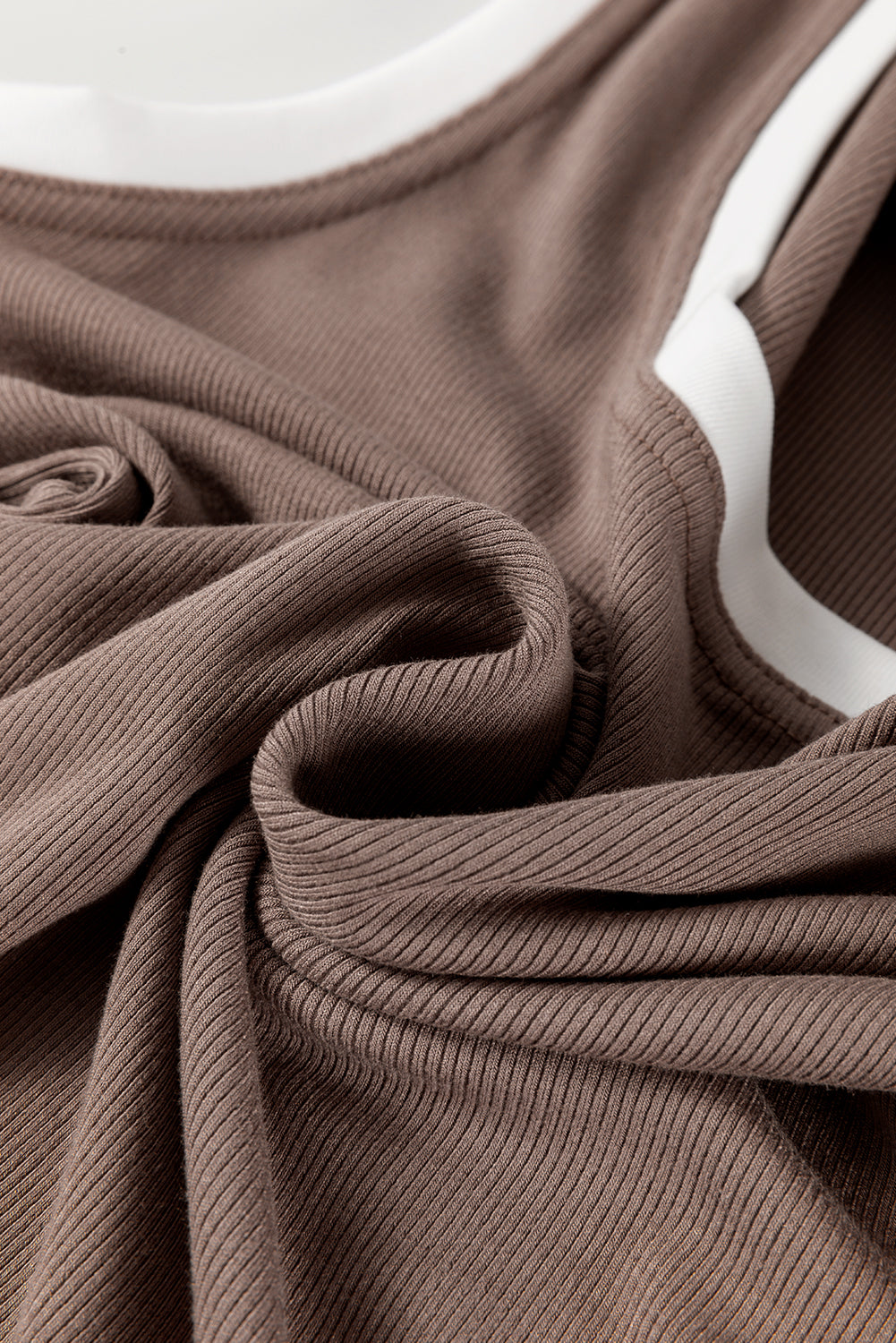 Smoke Gray Ribbed Knit Colorblock Edge U Neck Slim Fit Tank Top