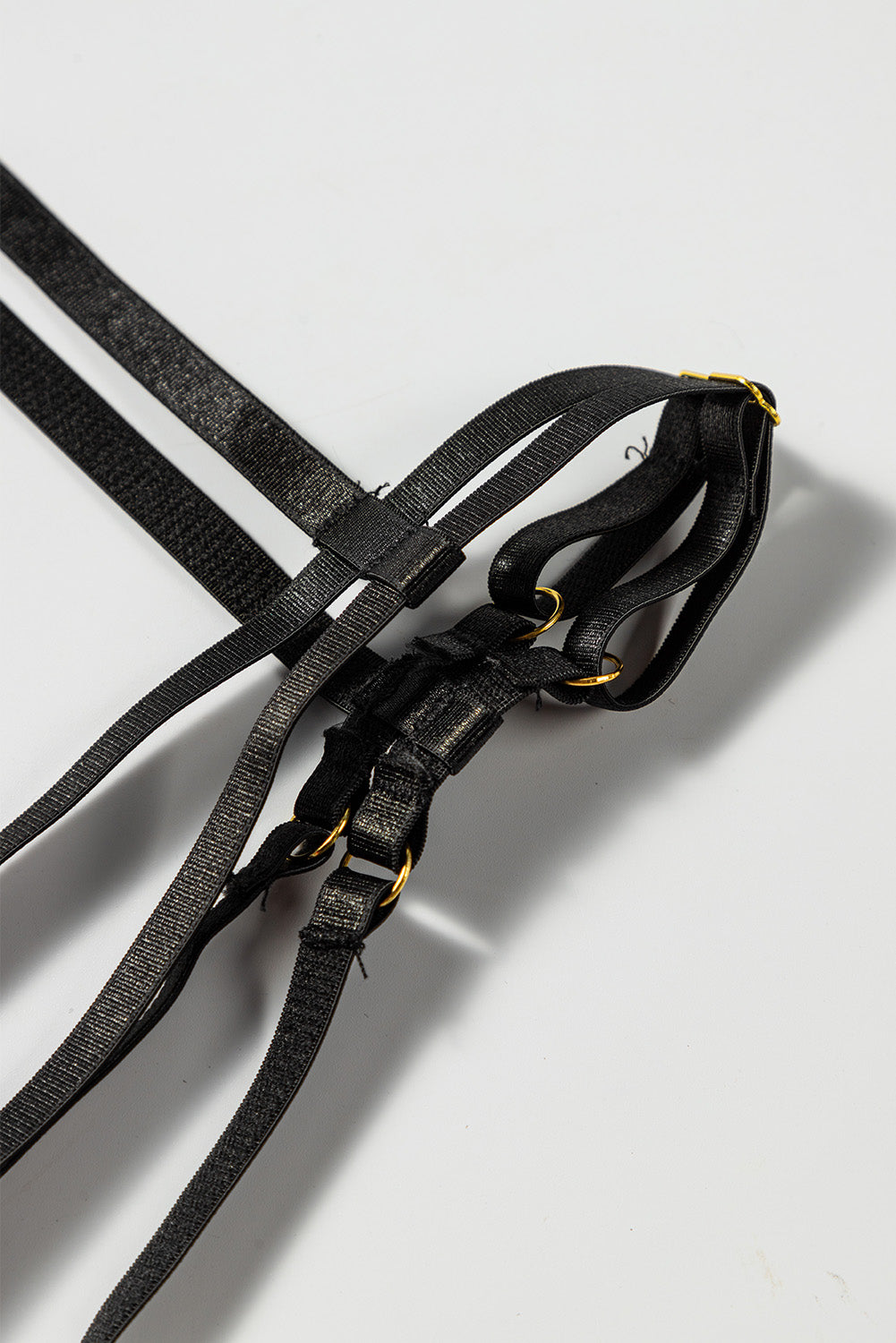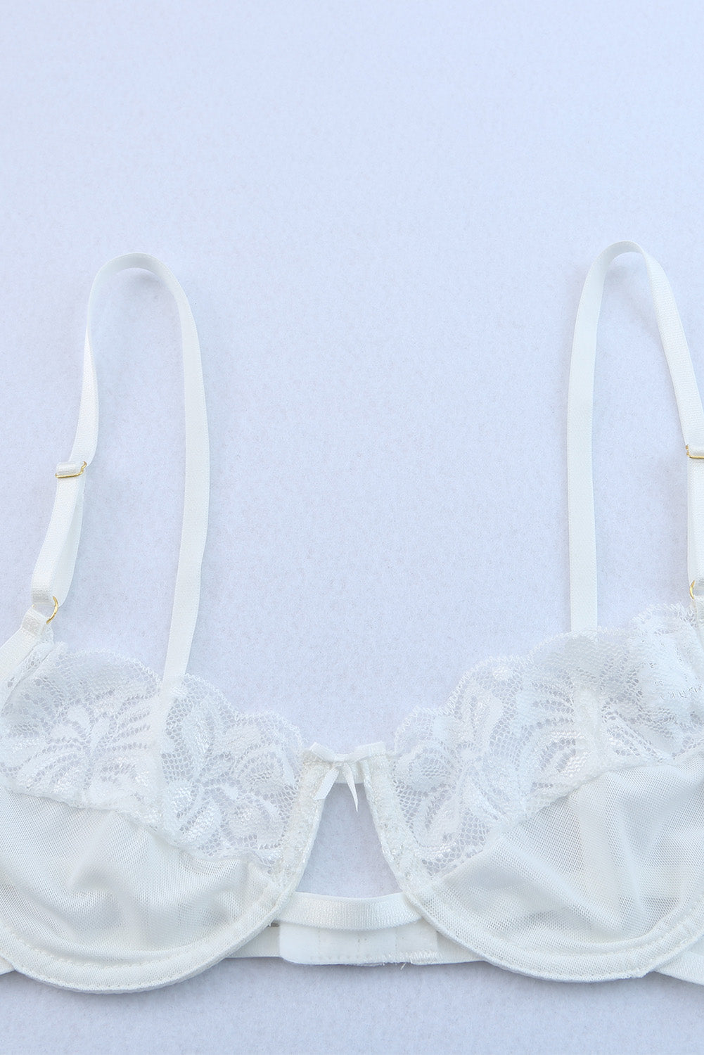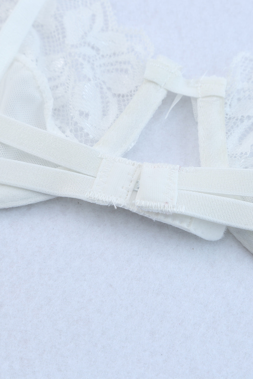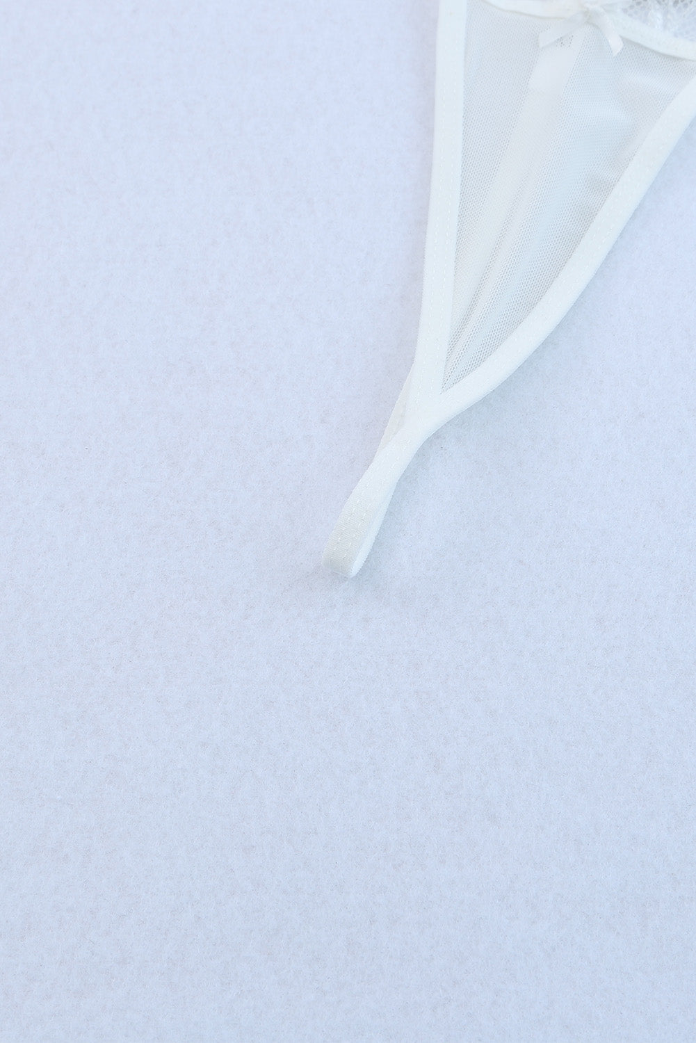 - Esta lencería sexy incluye sujetador de encaje, tanga y liguero.