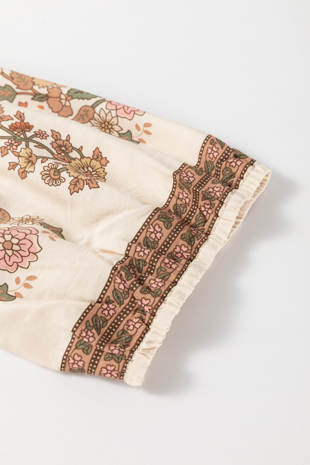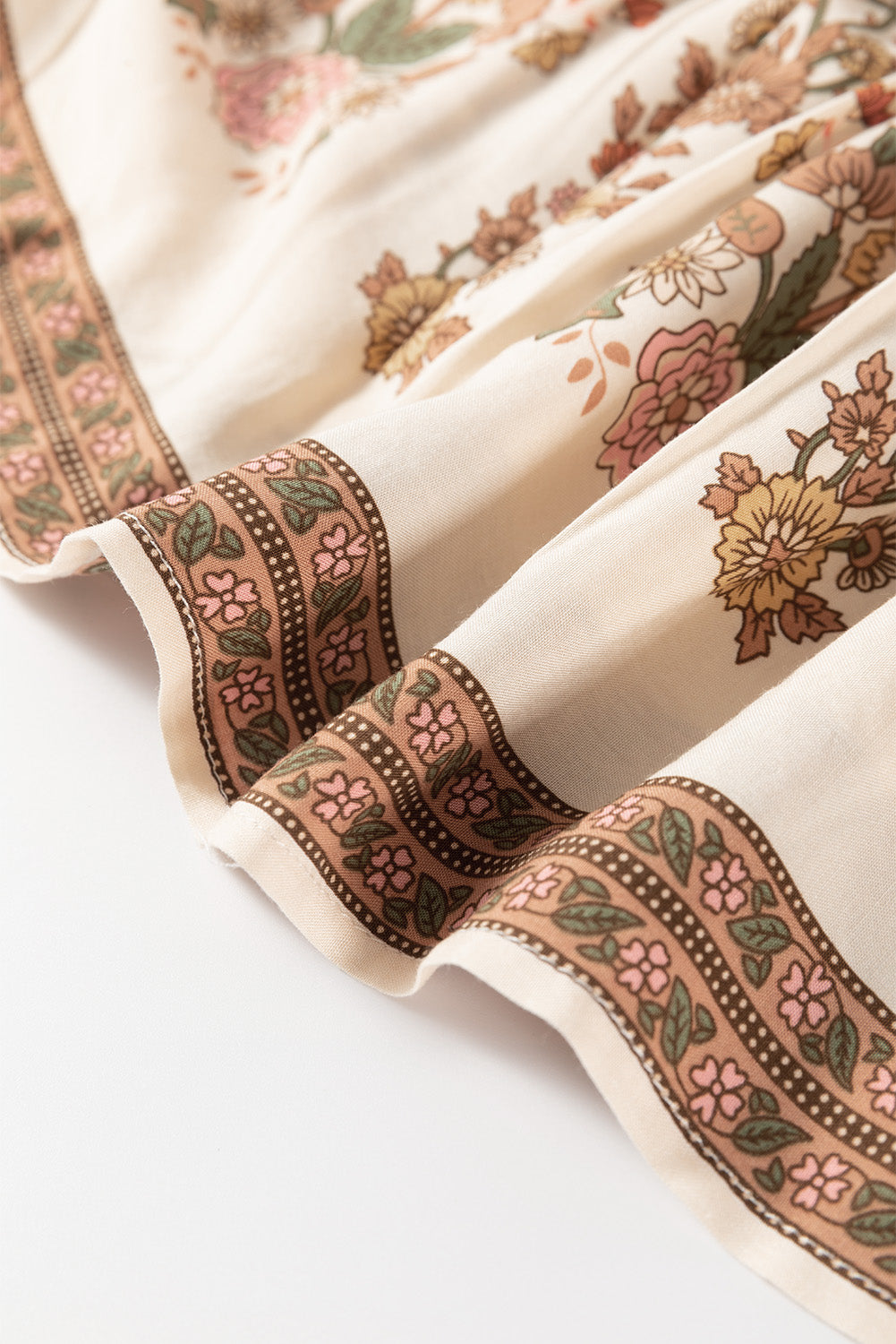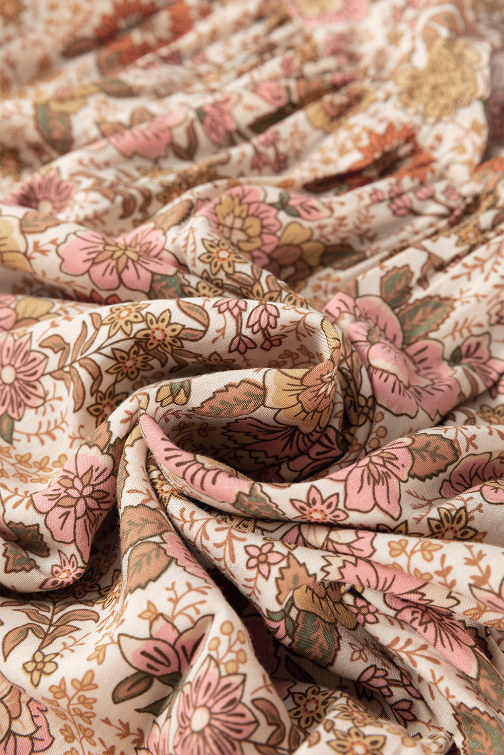 This apricot floral print tassel drawstring v-neck dress combines comfort and style in one. The loose fit and mini length provide a flattering look, while the tassels and drawstring add a touch of bohemian charm. Perfect for any occasion, this dress is both versatile and trendy.