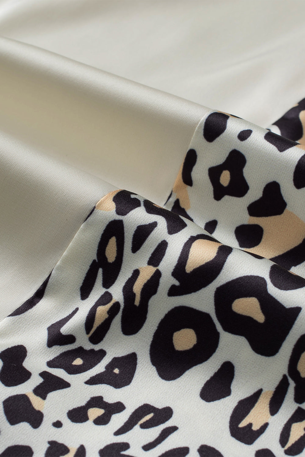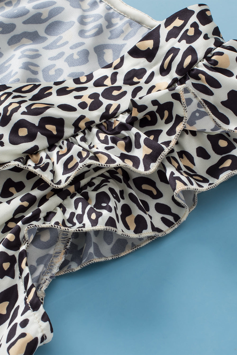 Apricot Half Leopard Patchwork Ruffle Sleeve Blouse