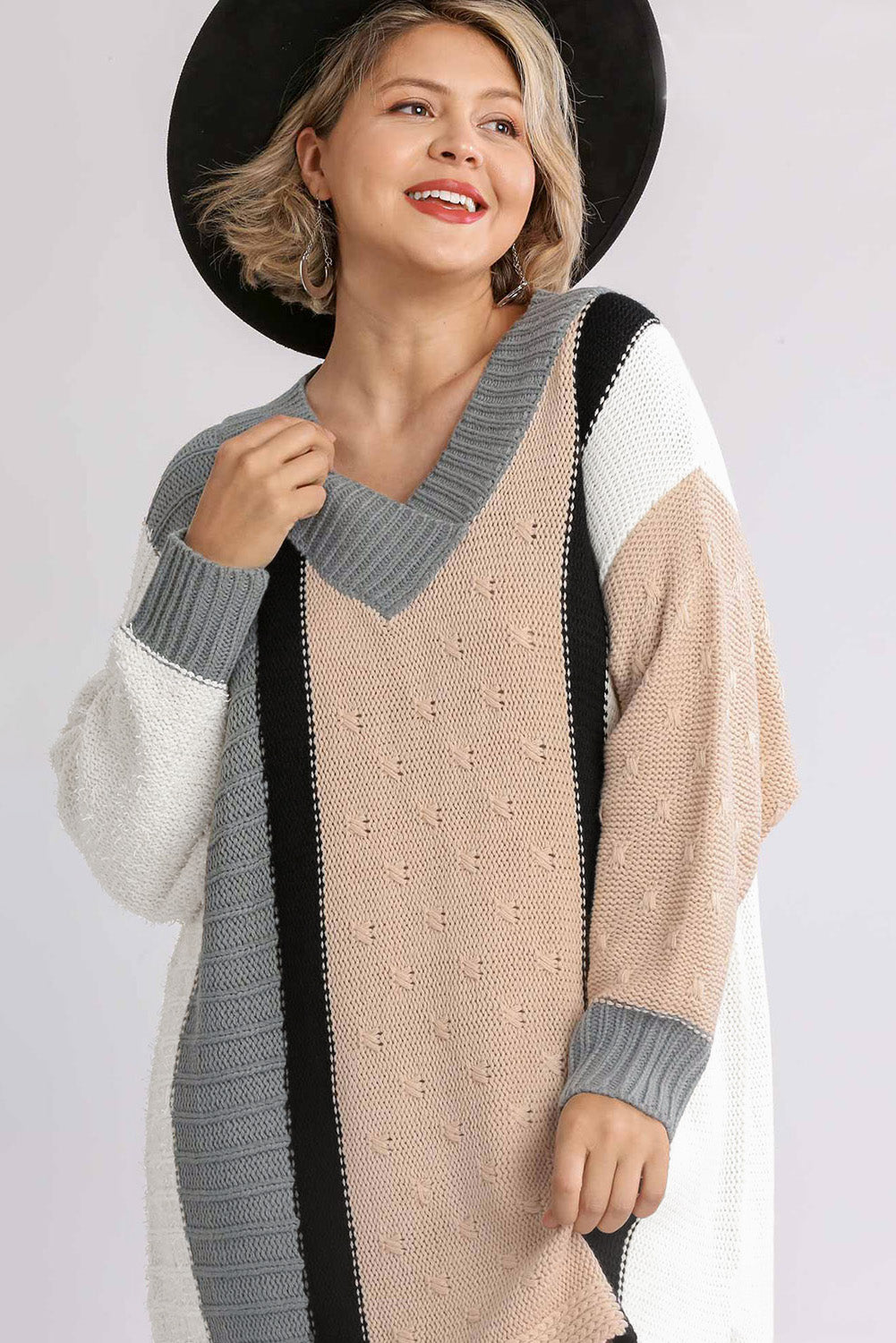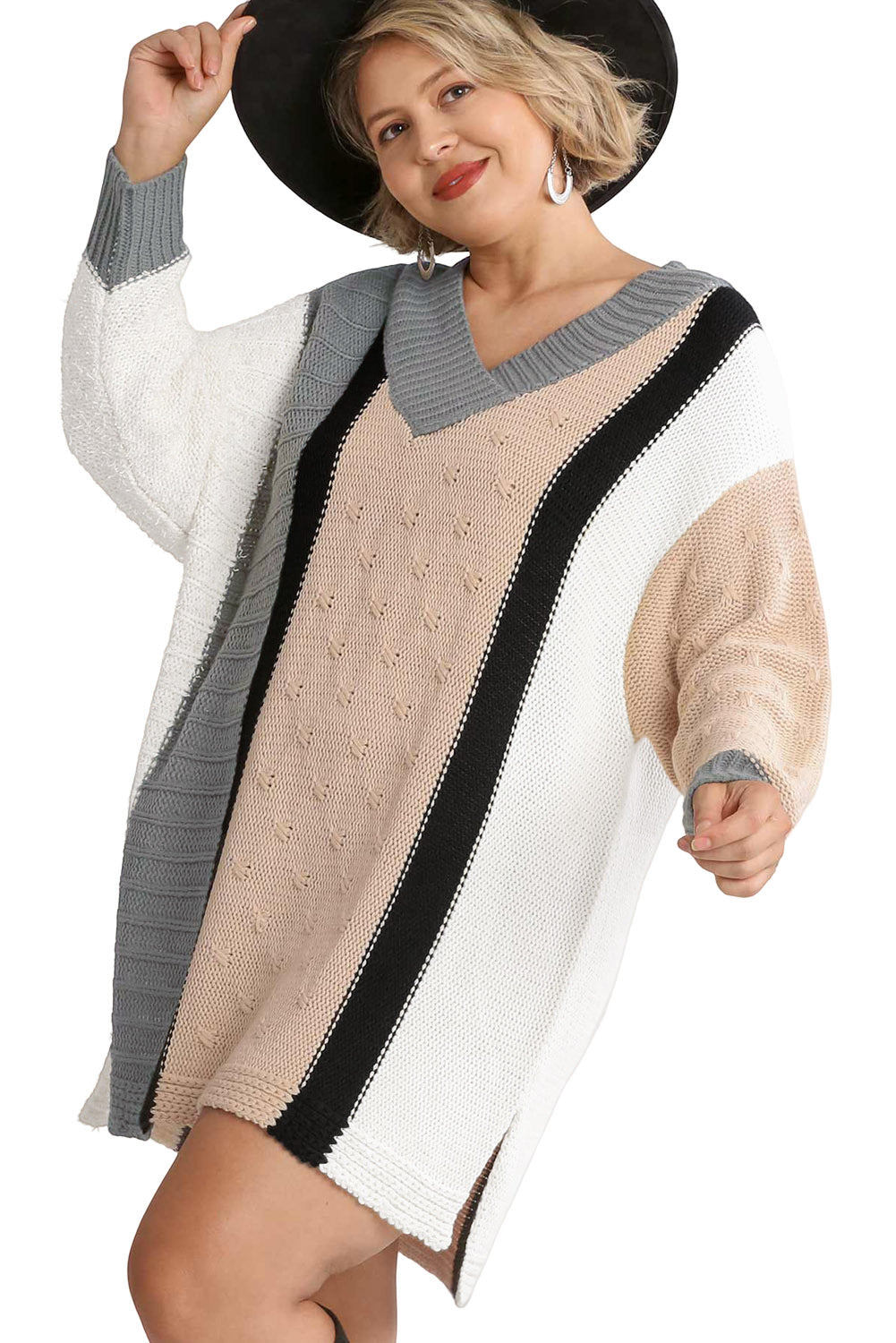 Vestido suéter talla grande bloque de color boucl mixto albaricoque