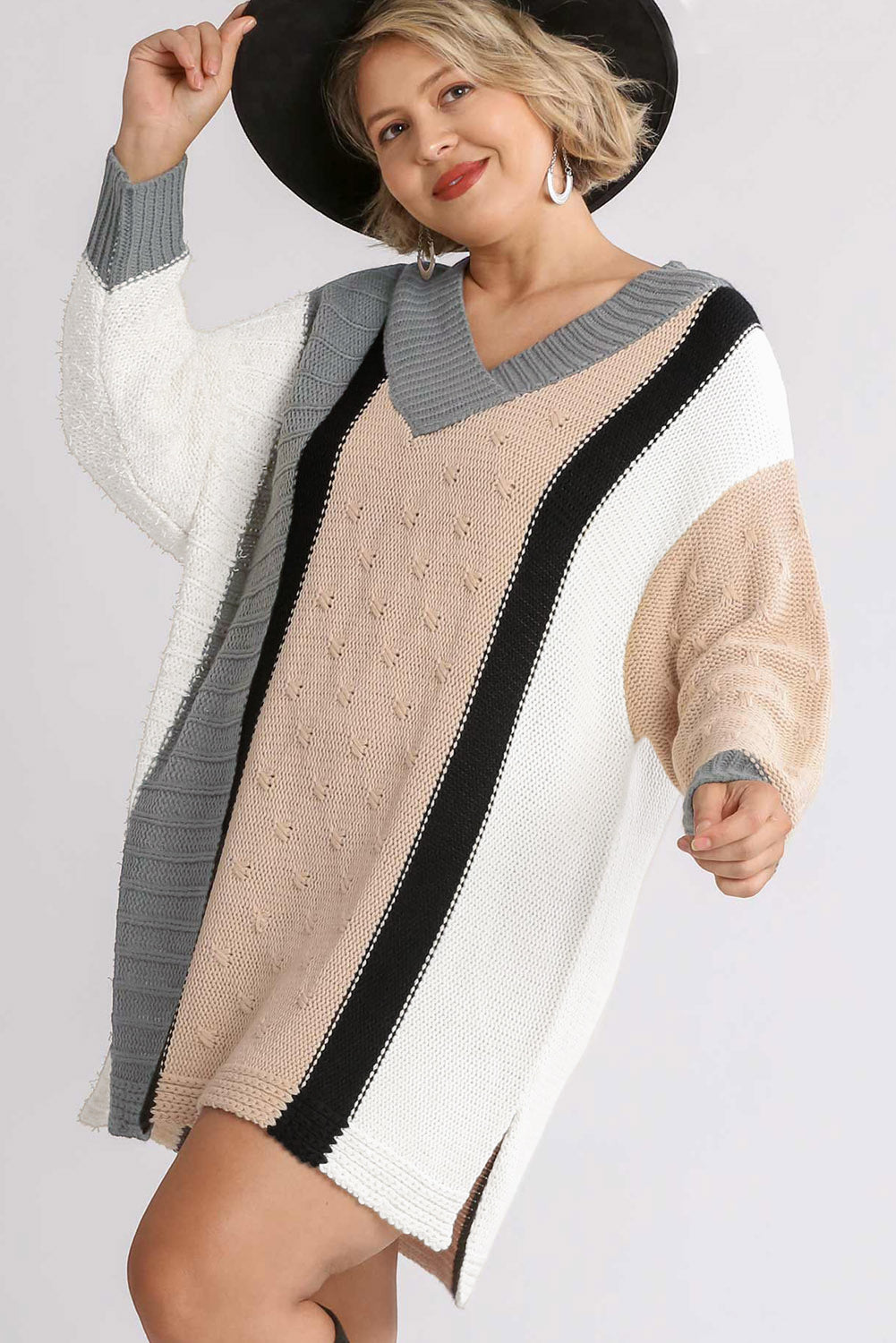- Este vestido suéter de talla grande con cuello av es muy moderno y elegante.