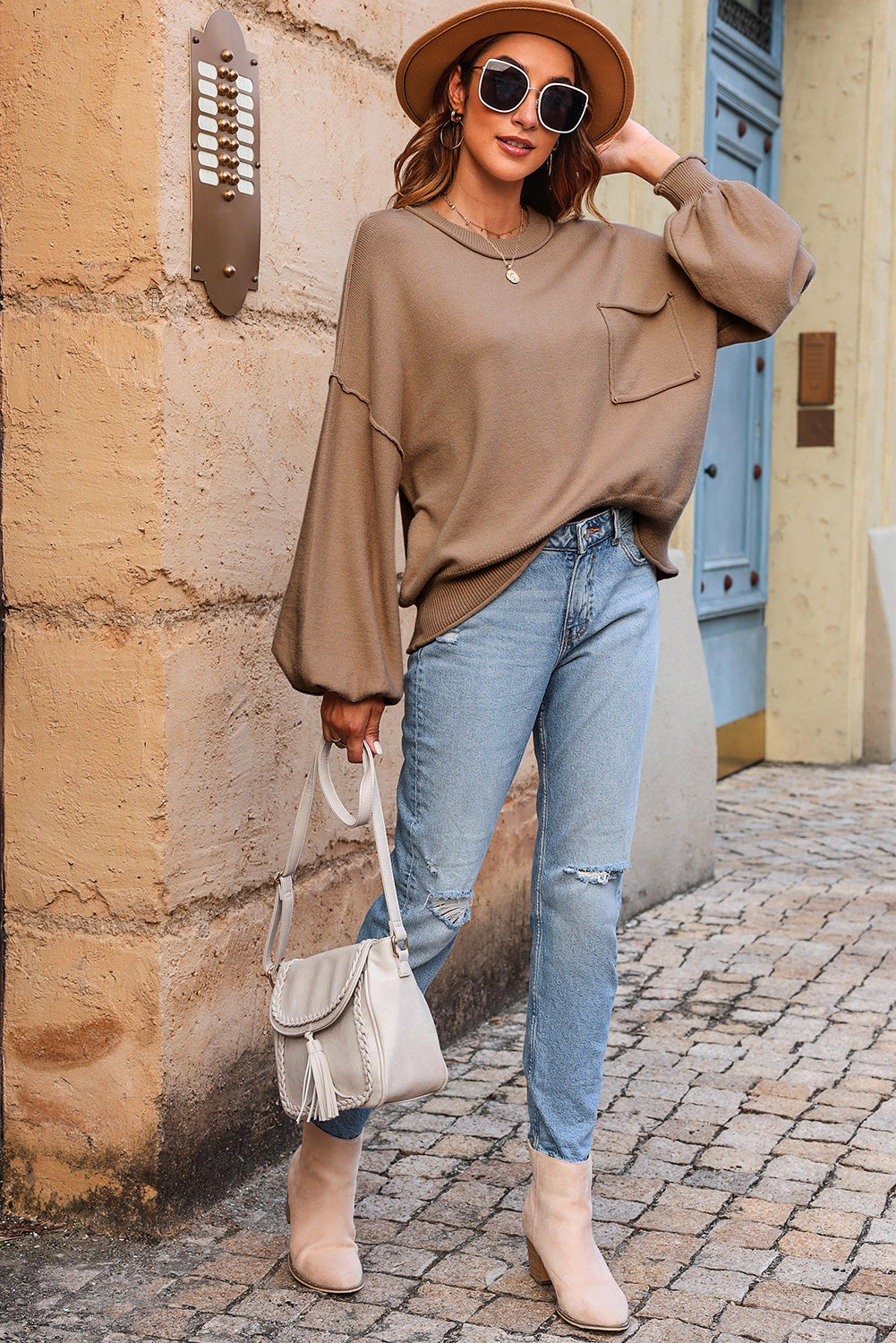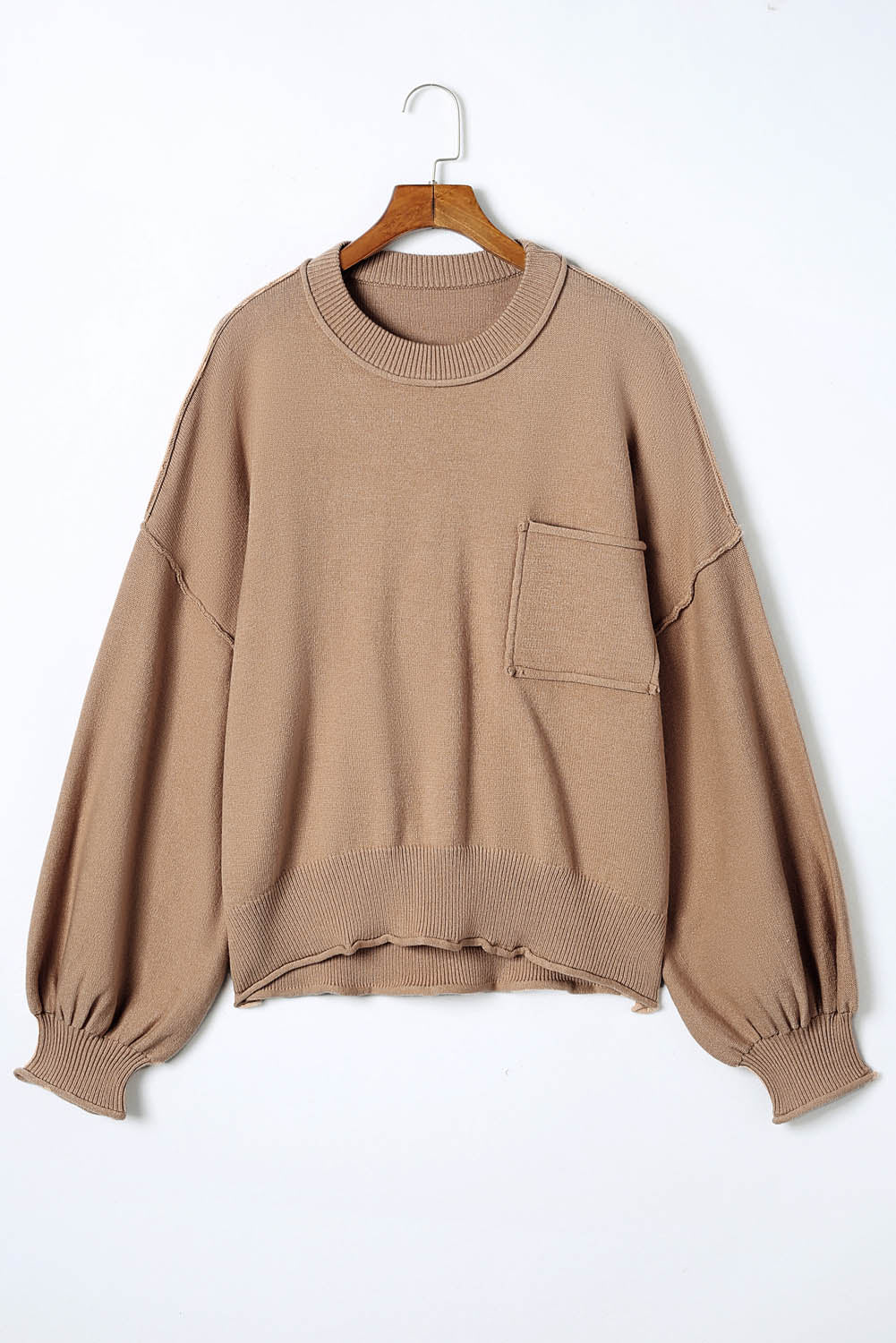 Suéter holgado con costuras expuestas y bolsillo con parche sin rematar albaricoque