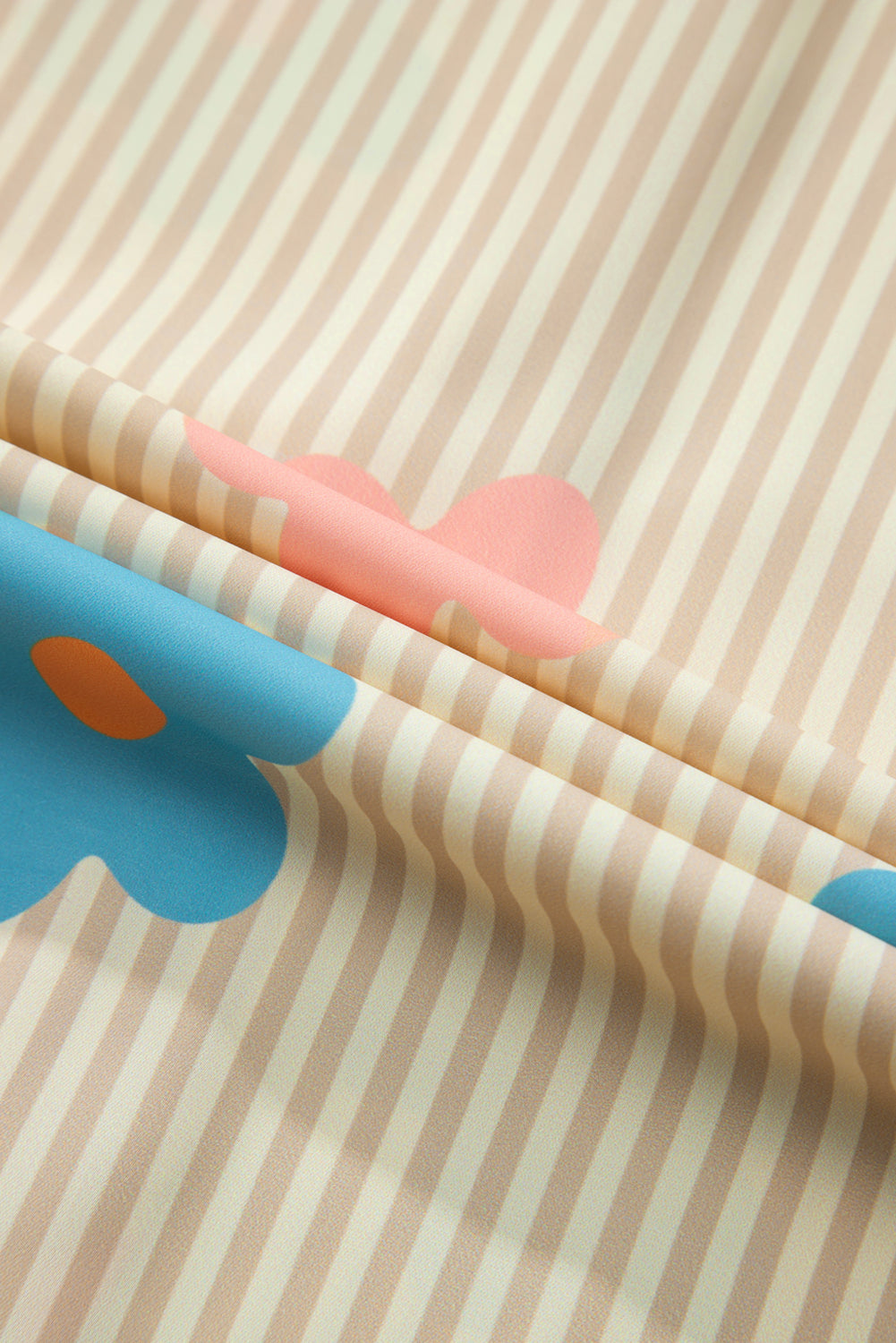 Apricot Stripe Flower Print Collared Button-up Loose Fit Shirt