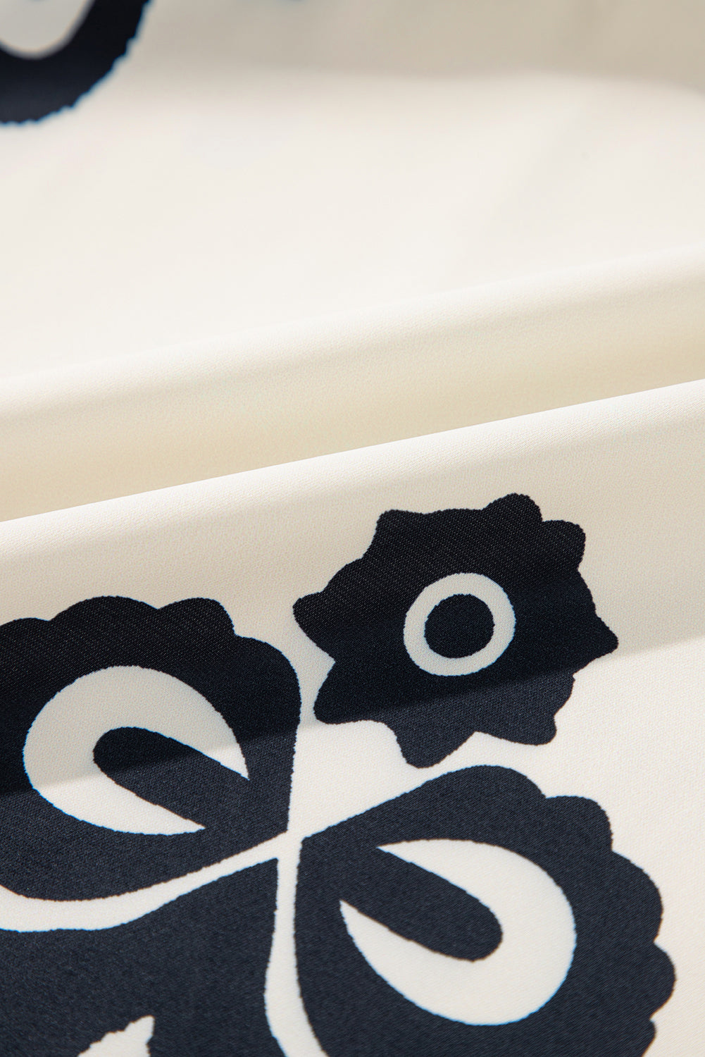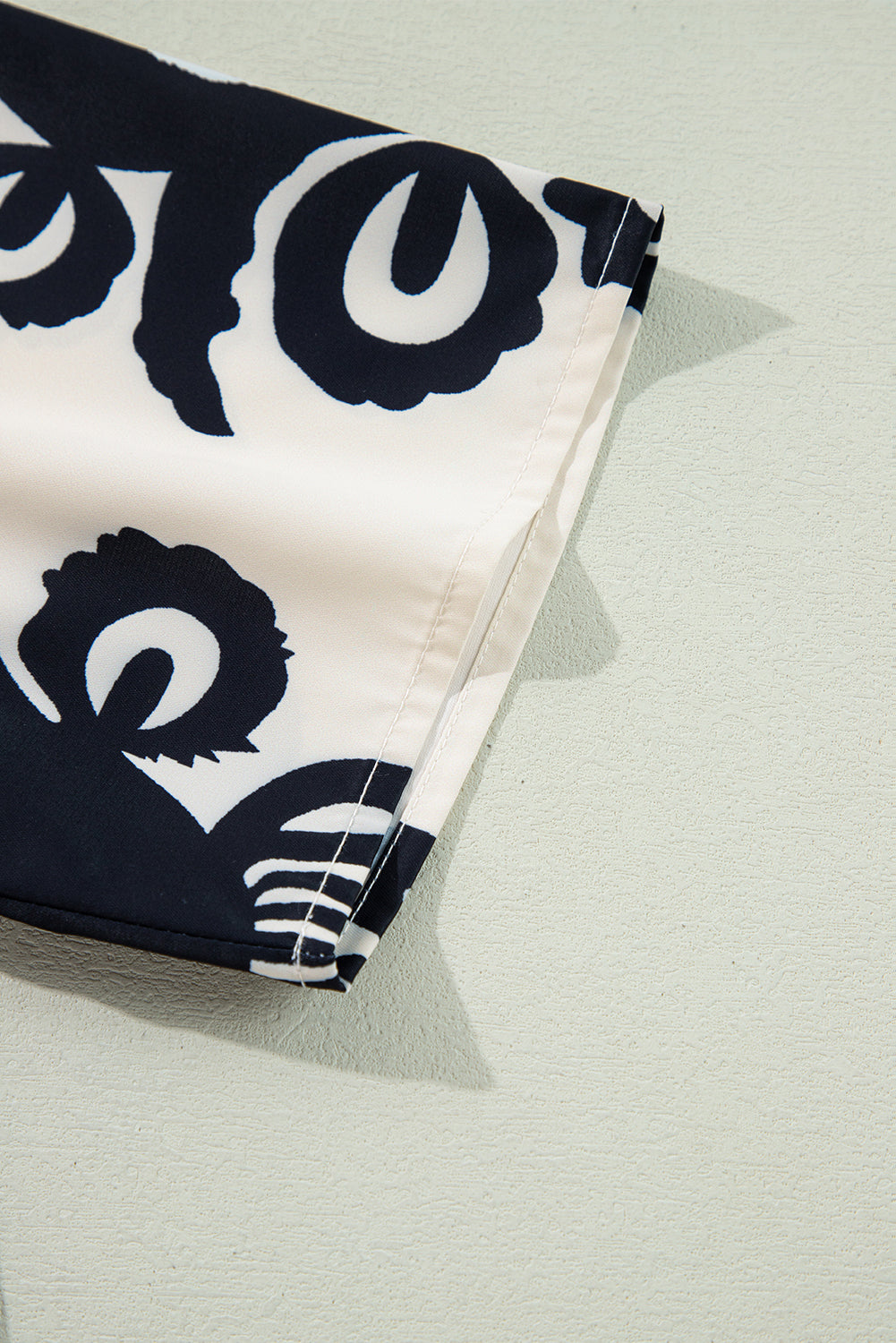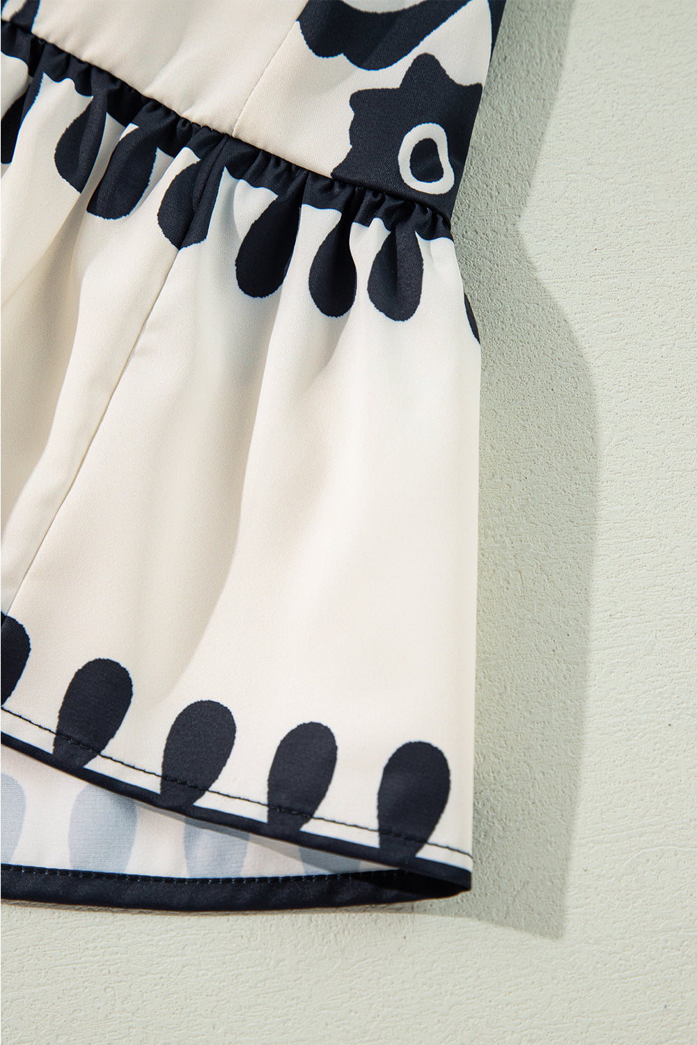 Apricot Western Print Ruffled Short Sleeve Loose Dress