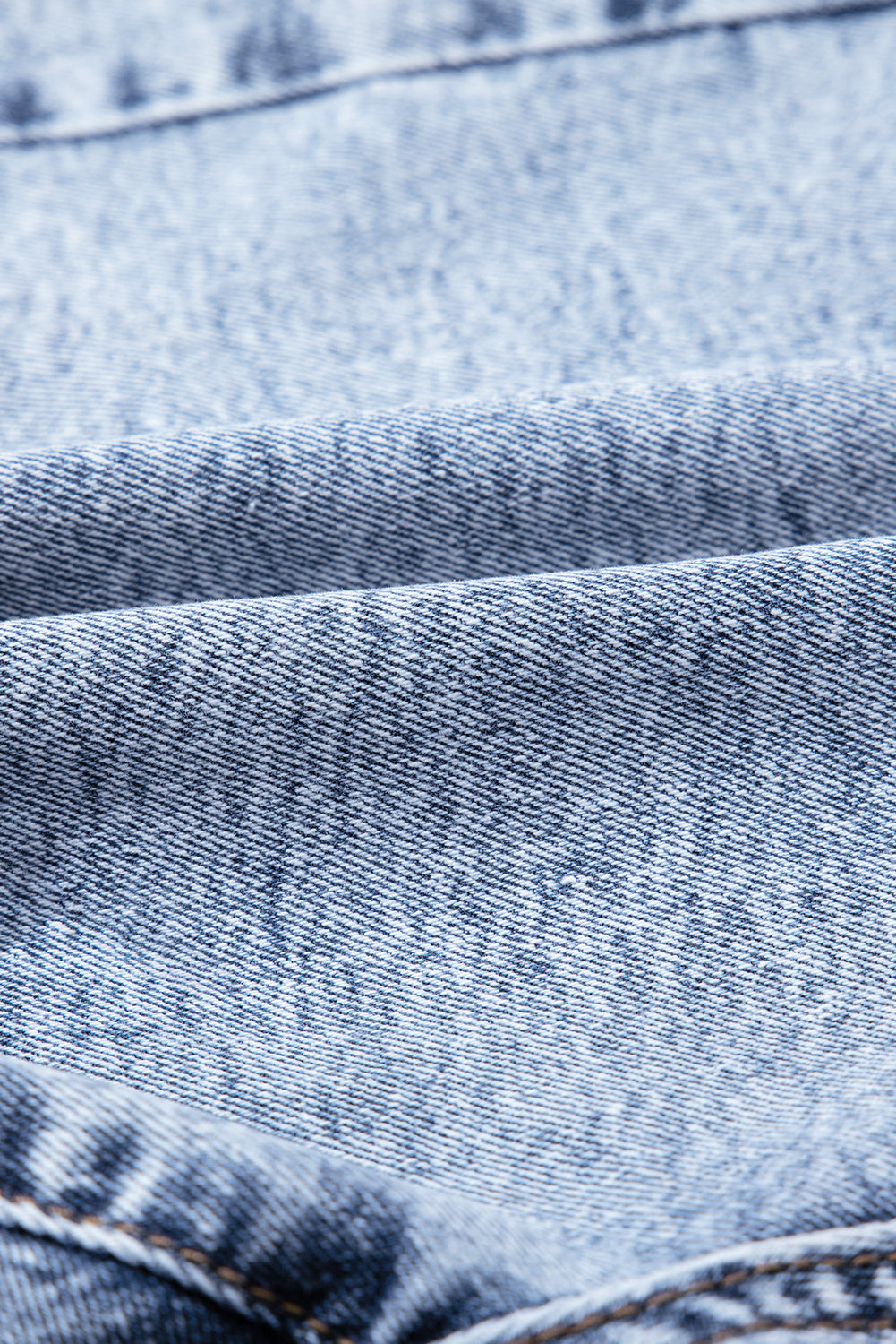 Elevate your summer style with our Beau Blue Rhinestone Light Wash Raw Hem High Waist Denim Shorts. Made from high-quality denim, these shorts feature a flattering high waist and eye-catching rhinestone detailing. The raw hem adds a trendy touch, while the light wash gives a laid-back vibe. Perfect for a chic and comfortable look.