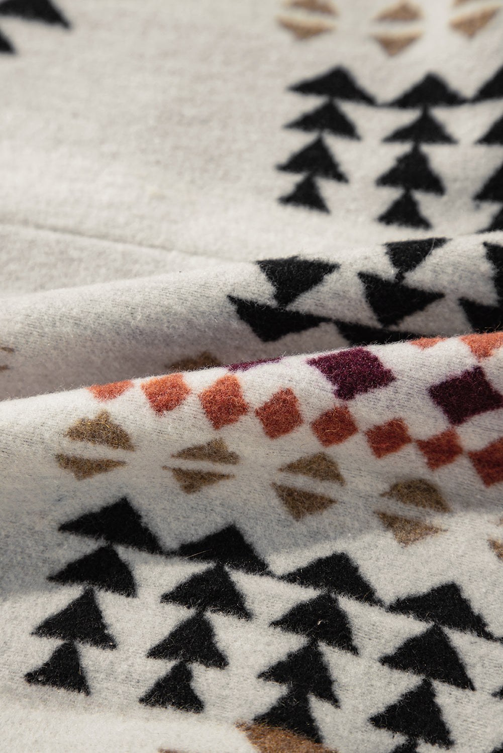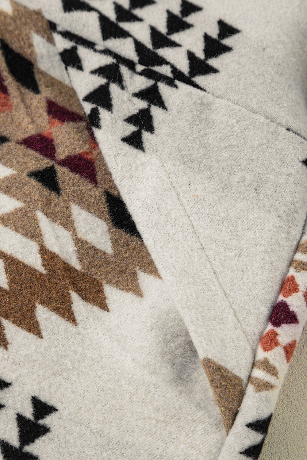 Beige Aztec Printed Stand Neck Zip Up Jacket
