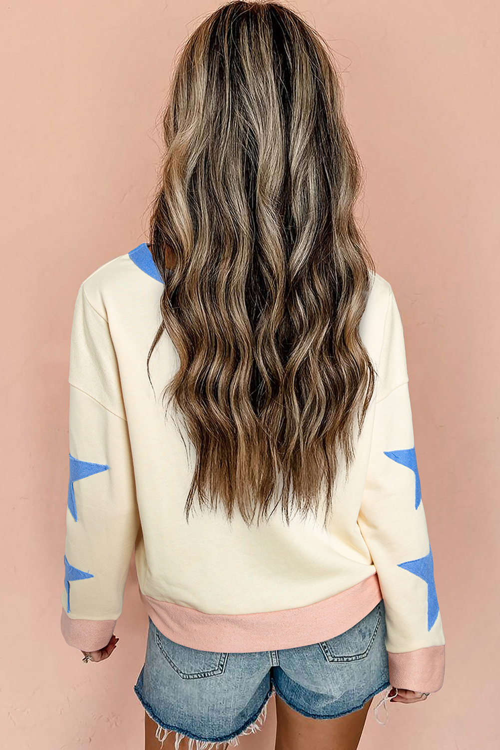 Beige GAME DAY Rugby Football Graphic Contrast Trim Pullover Sweatshirt