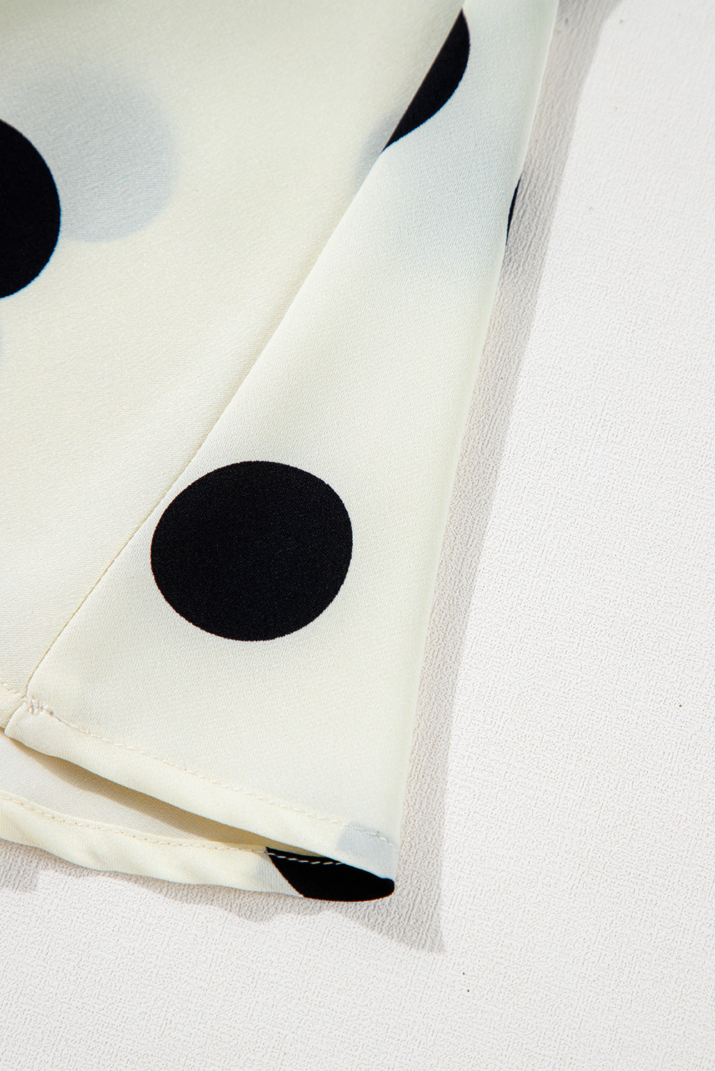 Beige Polka Dot Printed Surplice V Neck Puff Sleeve Mini Dress