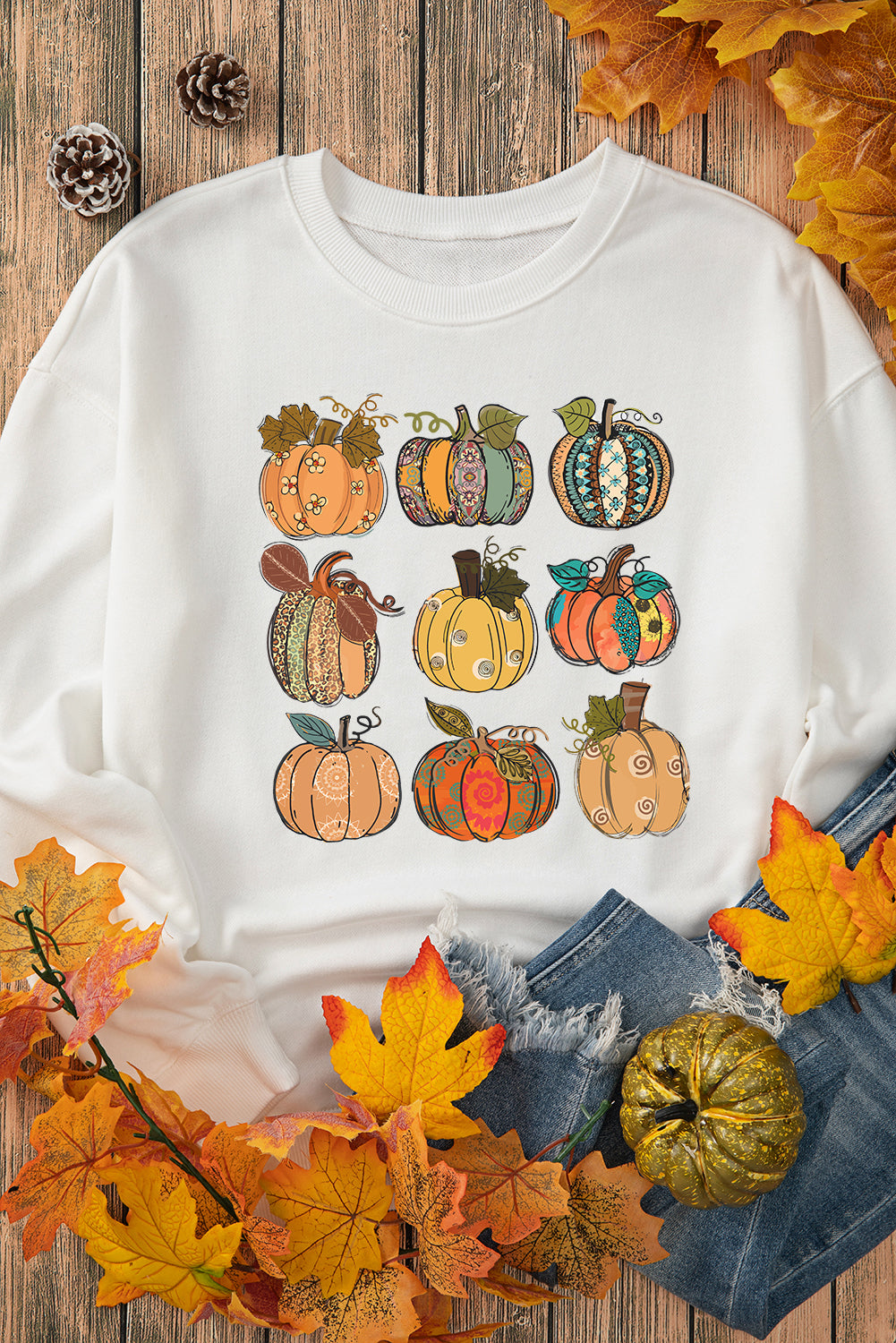 Beige Thanksgiving Pumpkin Print Drop Shoulder Sweatshirt