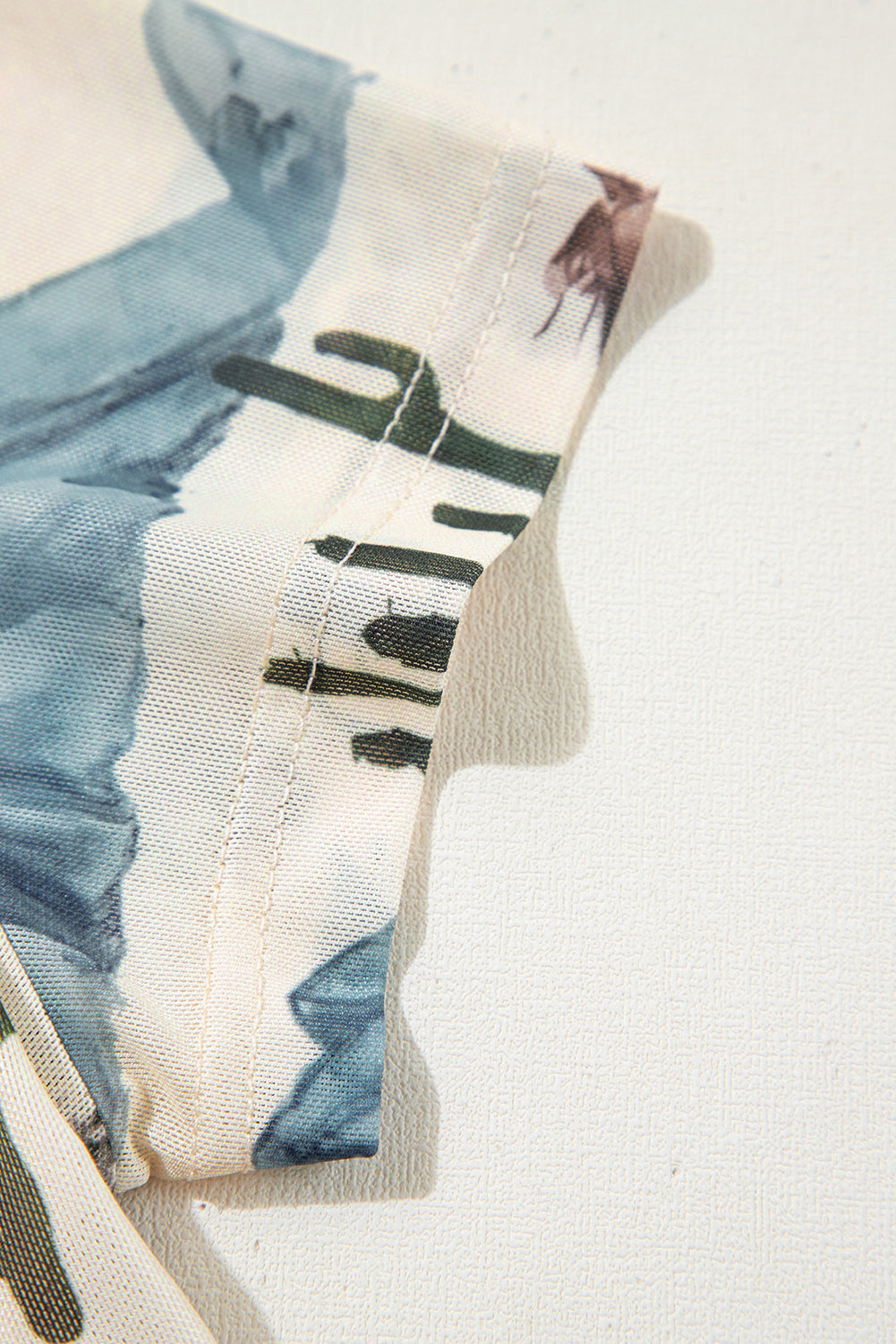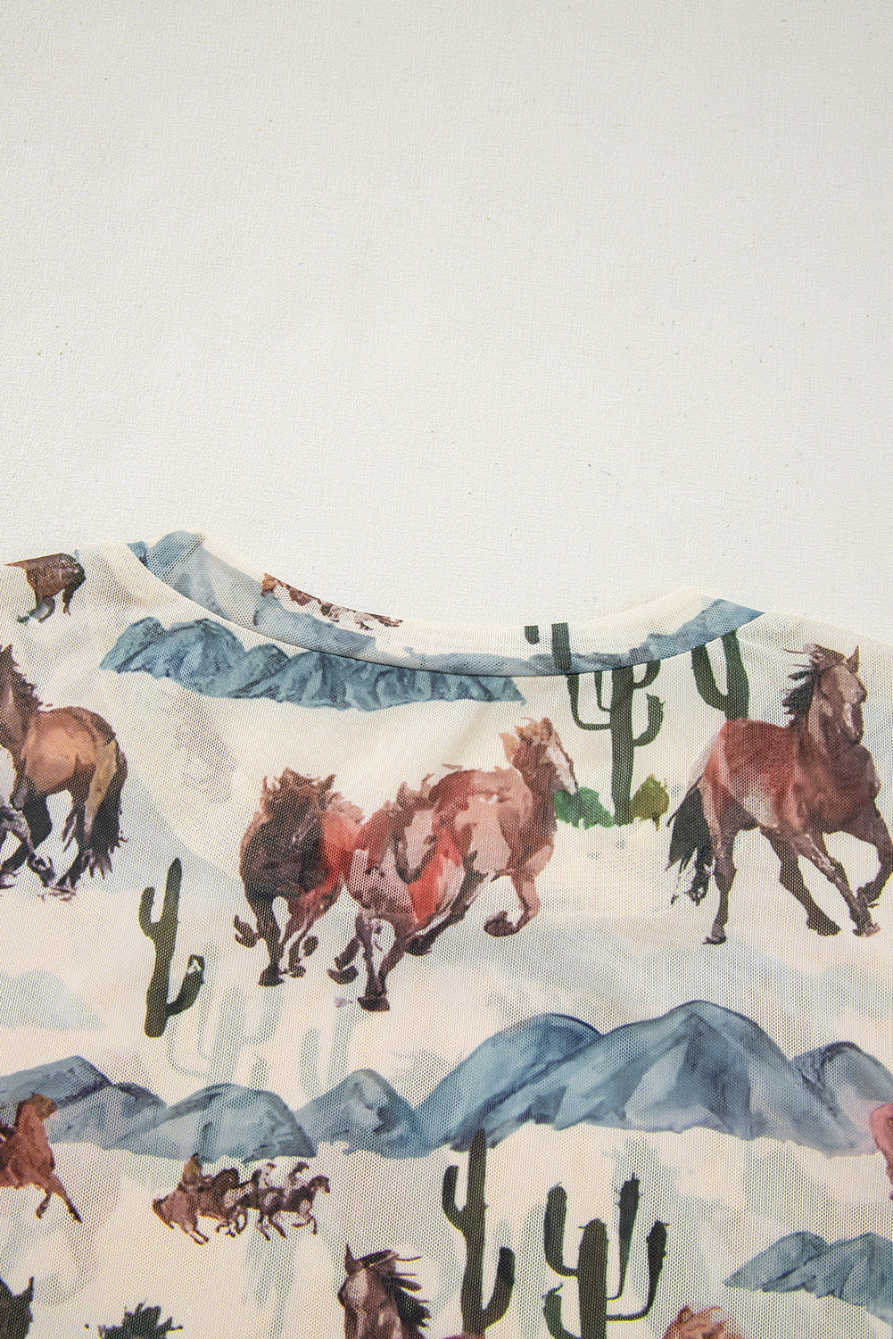Beige Western Fashion Mustang River Printed Mesh T Shirt