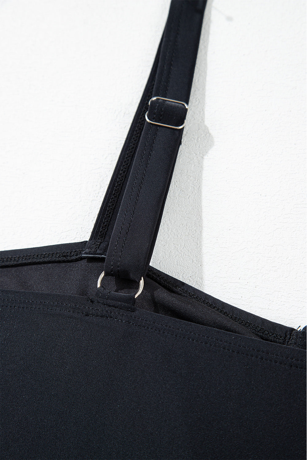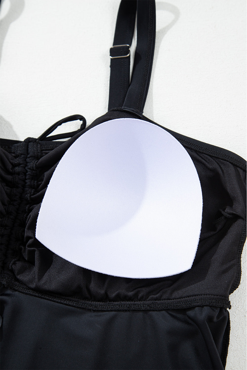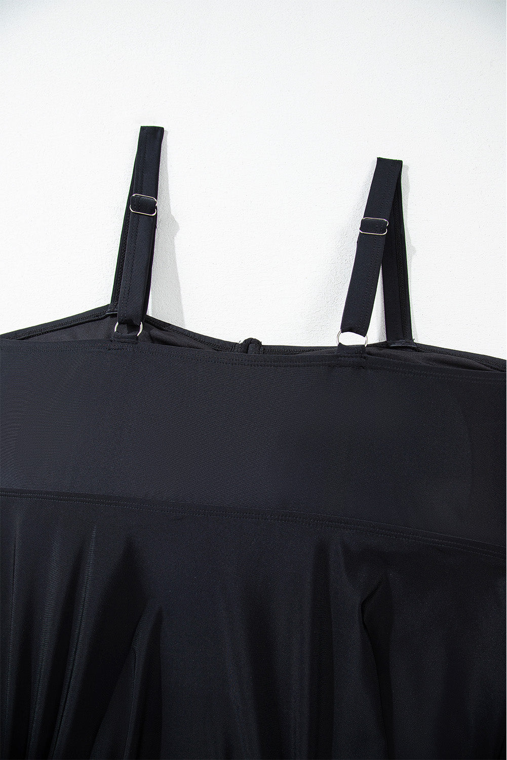 This plus size tankini offers a flattering flared top with a drawstring tied front, complemented by a stylish geometric print bottom. Crafted for comfort and style, this tankini is perfect for pool days or beach vacations. Stay confident and stylish in this sleek and functional swimwear option.