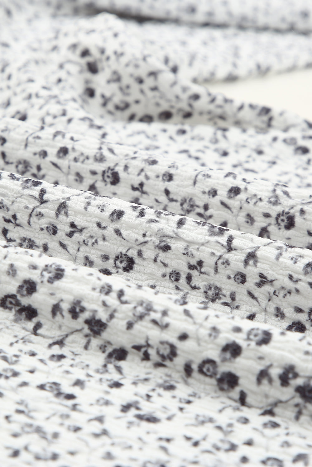 Blusa con mangas de burbuja con volantes arrugados y estampado floral negro