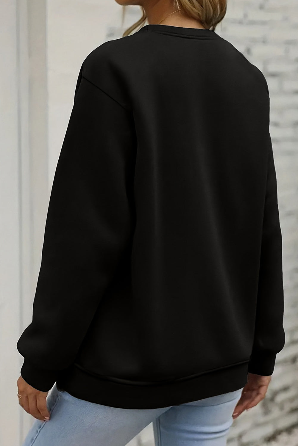 Crafted from high-quality materials, this Black Halloween Ghosts Print Round Neck Sweatshirt is an essential piece for the spooky season. Featuring a classic round neck design and a playful ghost print, this sweatshirt is sure to add a touch of Halloween spirit to any outfit. Stay warm and stylish with this must-have sweatshirt.