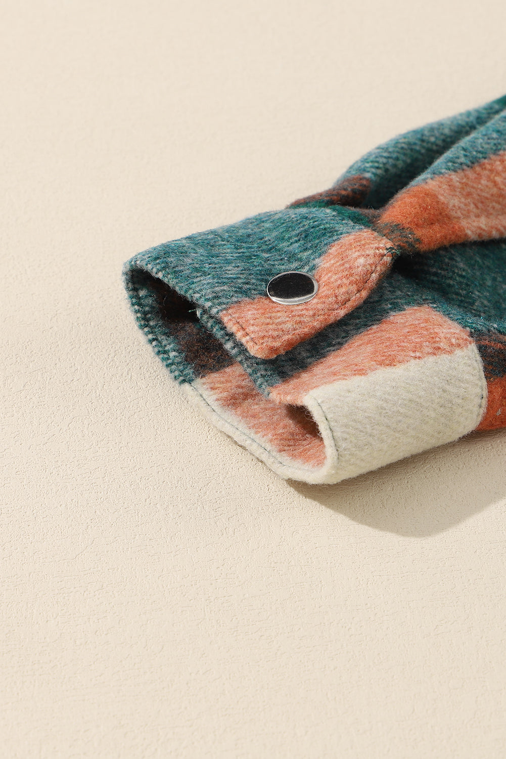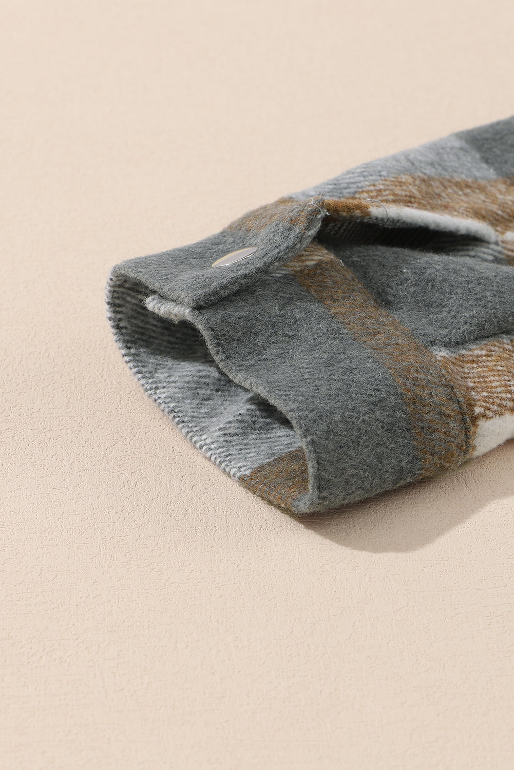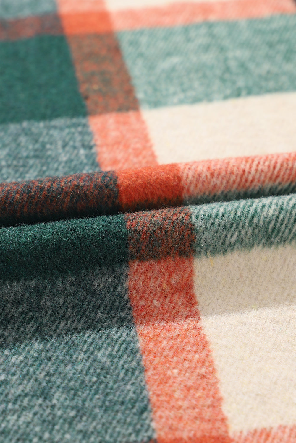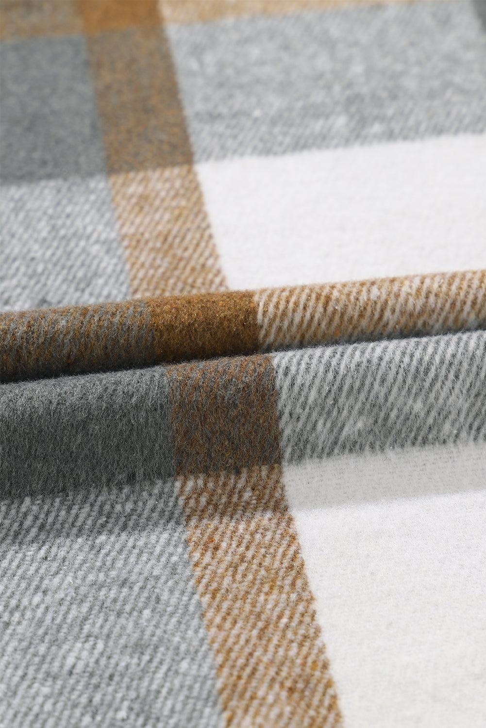 Chaqueta negra con dobladillo con flecos y bolsillo con botones a presión a cuadros