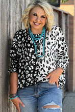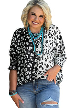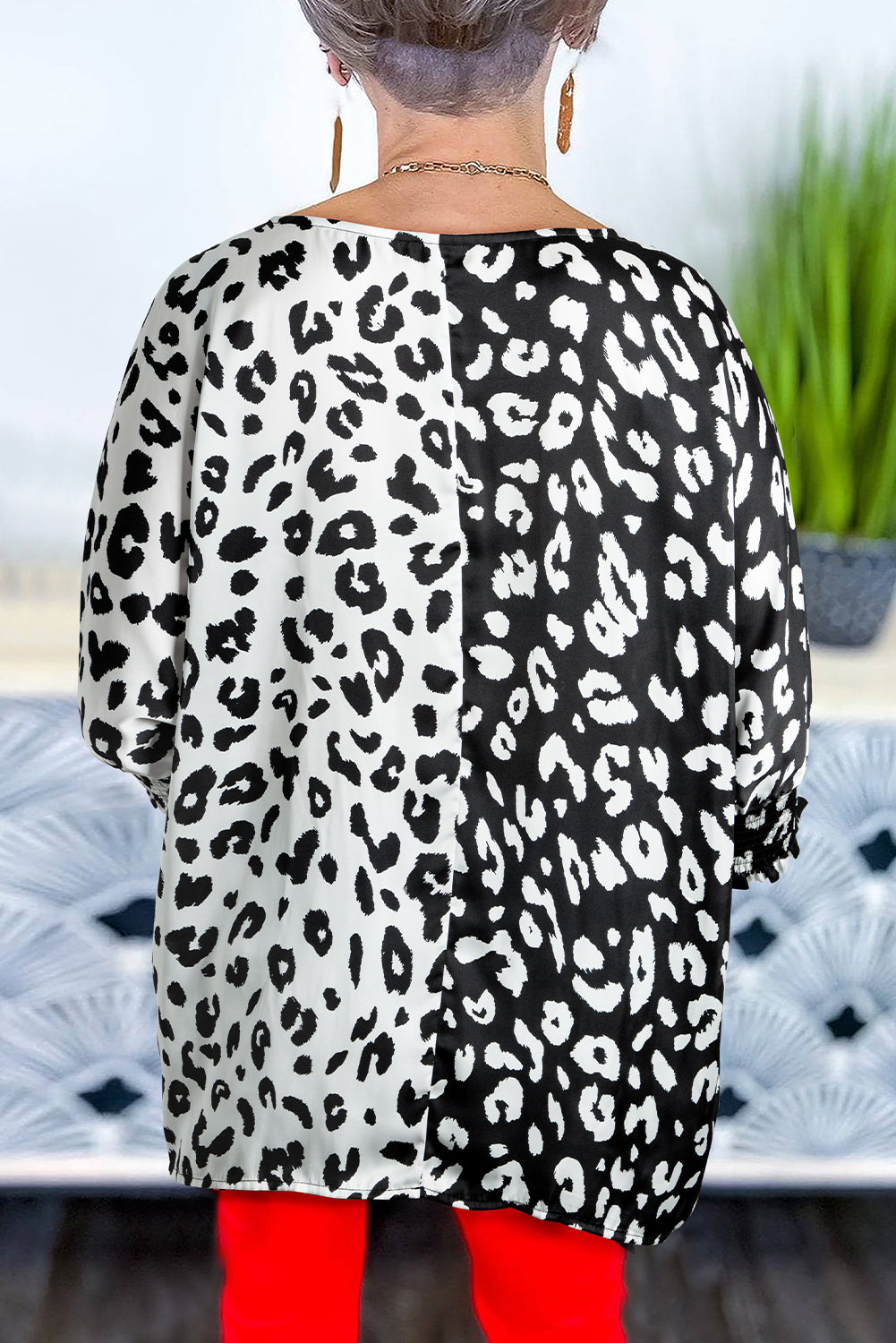 Black Plus Size Contrast Leopard Half Sleeve Blouse