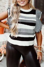 Black Plus Size Mixed Striped Print Ruffled Sweater Vest