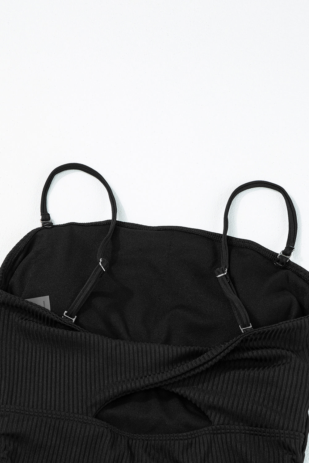Black Ribbed Drawstring Sides Cutout One Piece Swimsuit