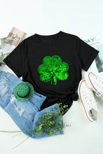Black Sequin Clover Embroidered Round Neck Graphic Tee