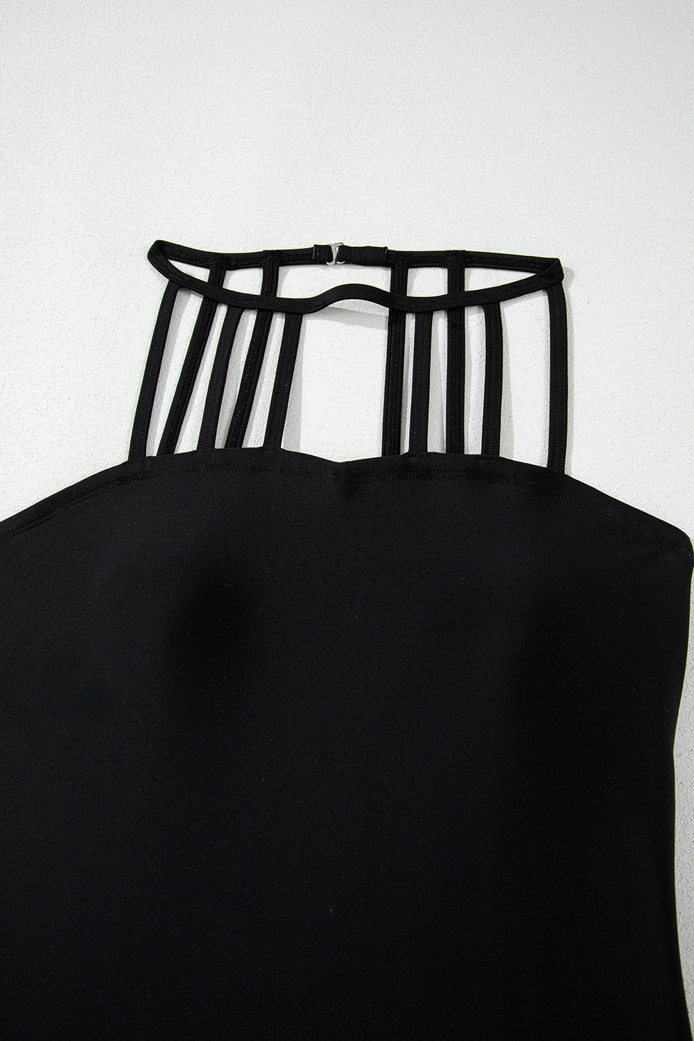 Unleash your inner confidence and style with our Black Sleeveless Strappy Halter Neck Sexy One Piece Swimsuit. Made with high-quality materials, this swimsuit offers a sleek and flattering fit, while the strappy halter neck adds a touch of boldness to your look. Perfect for making a statement at the beach or pool.