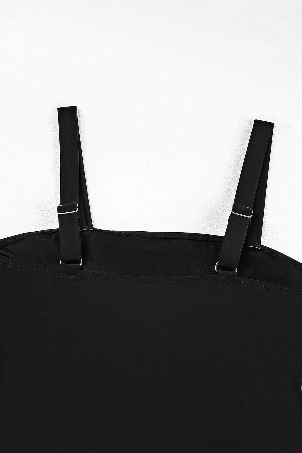 Black Solid Square Neck Sleeveless Tankini Swimsuit