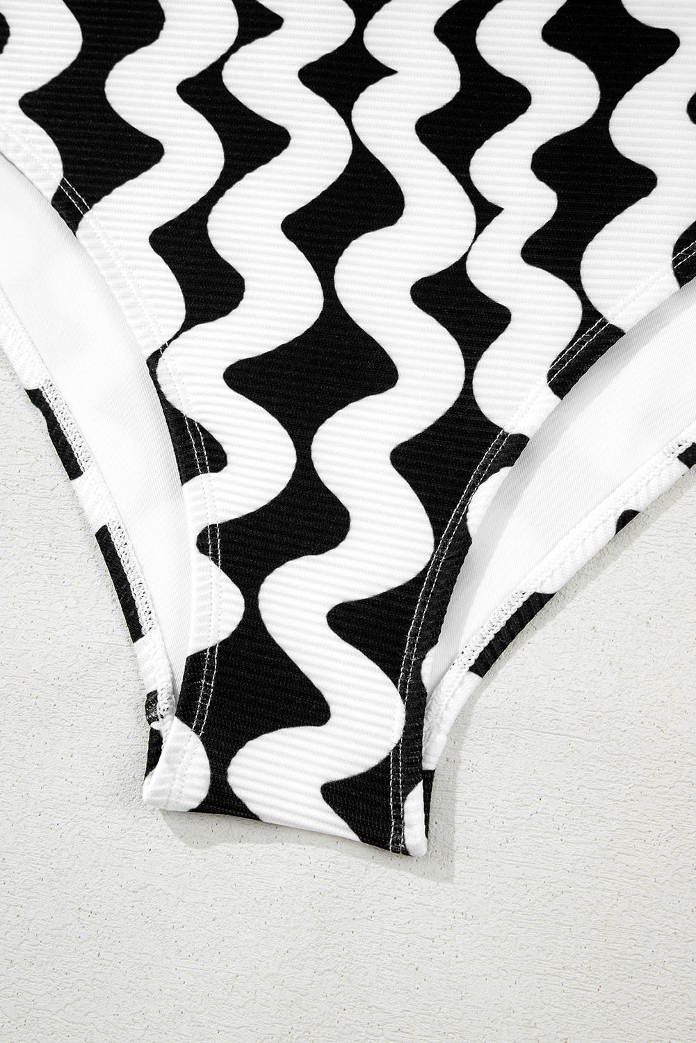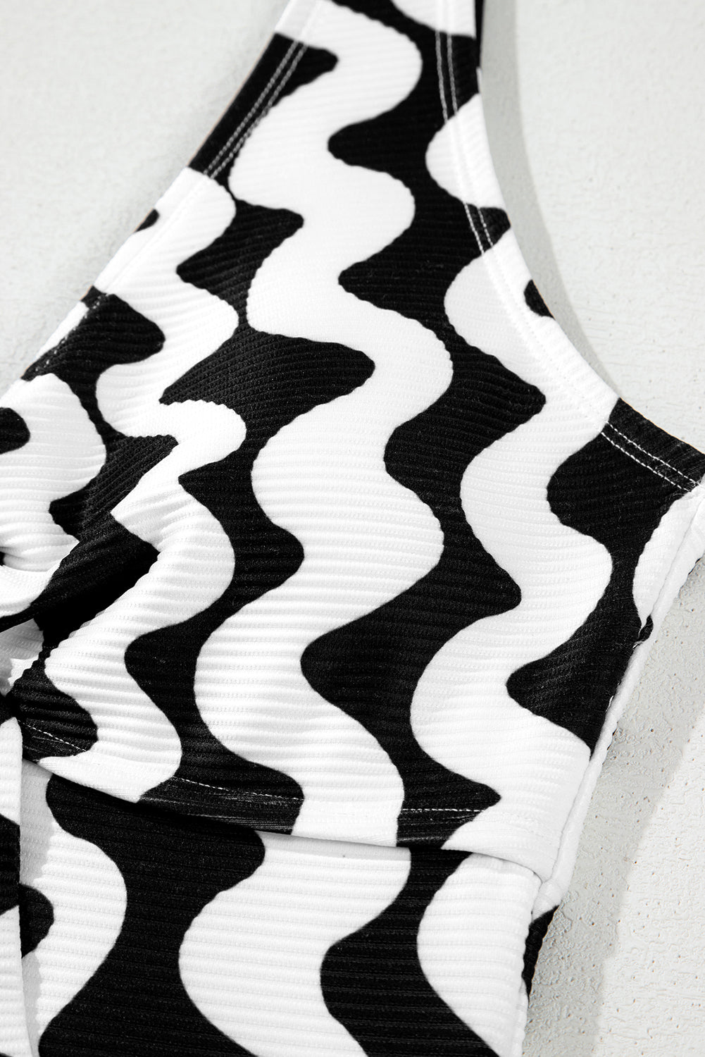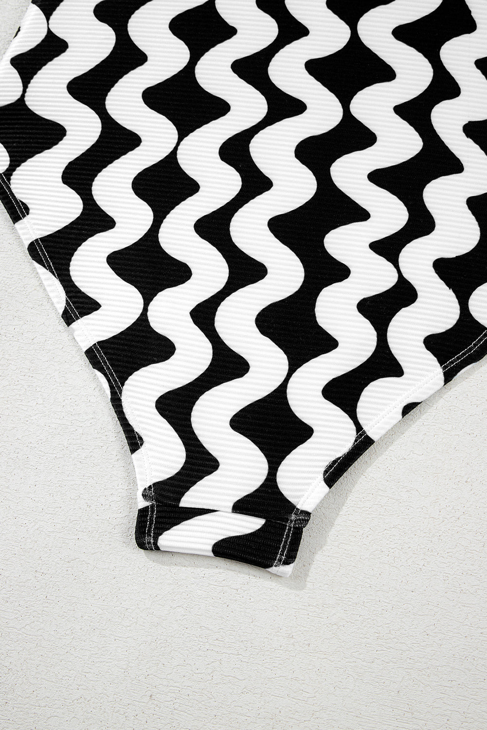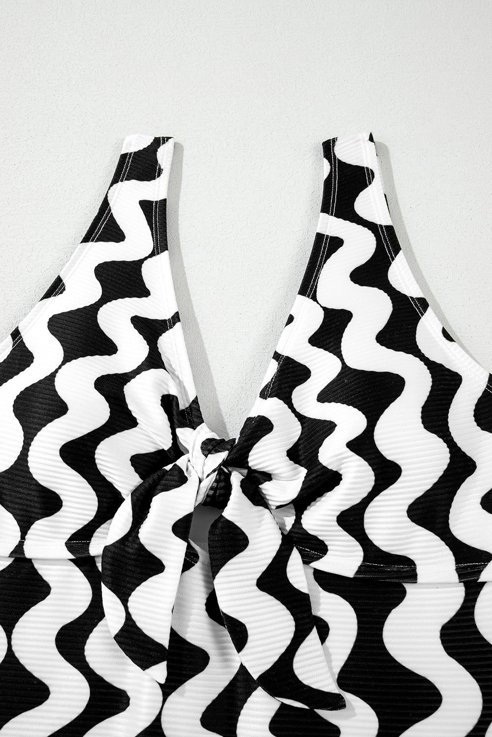Discover a new level of style and comfort with our Black Stripe Bowknot Ricrac Print V Neck Low Back Cut One Piece Swimsuit. This stunning swimsuit features a chic black and white stripe design, accented with a playful bowknot and ricrac print. The V neck and low back cut provide a flattering silhouette, perfect for lounging by the pool or soaking up the sun at the beach. Elevate your swimwear game and make a statement with this one piece swimsuit.