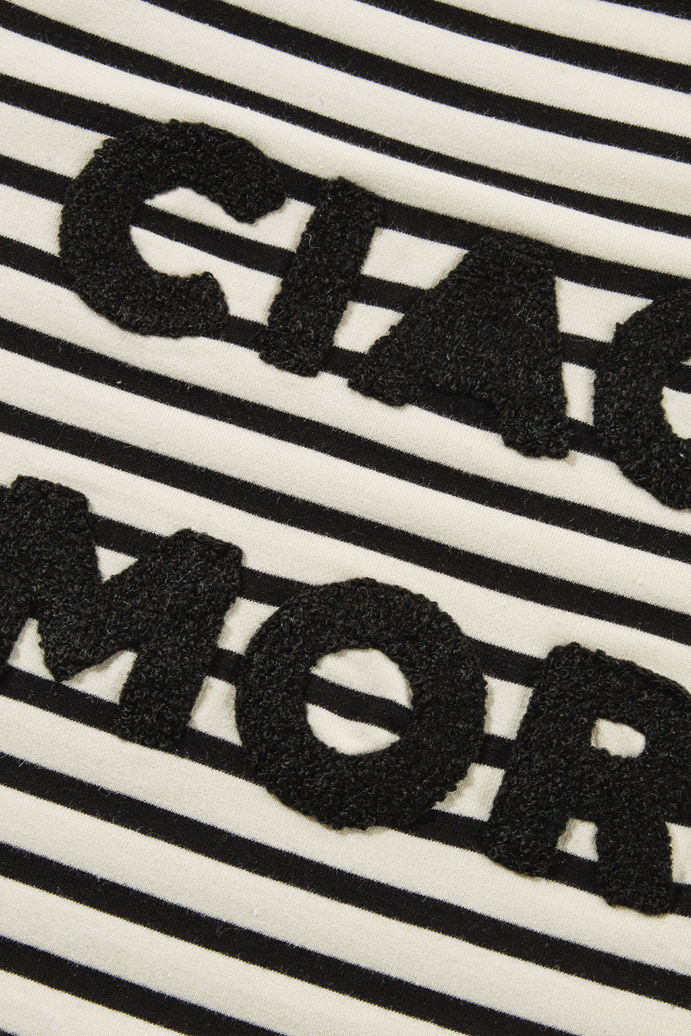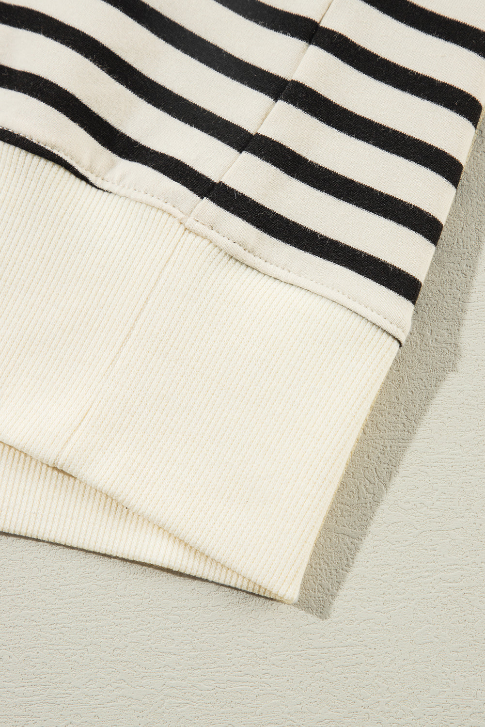 Black Stripe CIAO AMORE Graphic Buttoned Pullover Sweatshirt