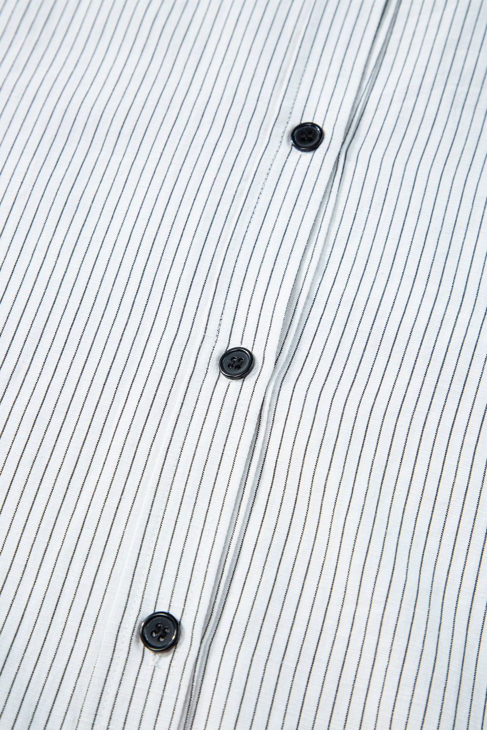 Make a statement with the Black Stripe Roll-tab Sleeve Pocketed Long Shirt. This professional, yet stylish, shirt features a classic black stripe design and convenient roll-tab sleeves. With functional pockets, it not only looks great but also provides practicality. Upgrade your wardrobe with this versatile and fashionable shirt.