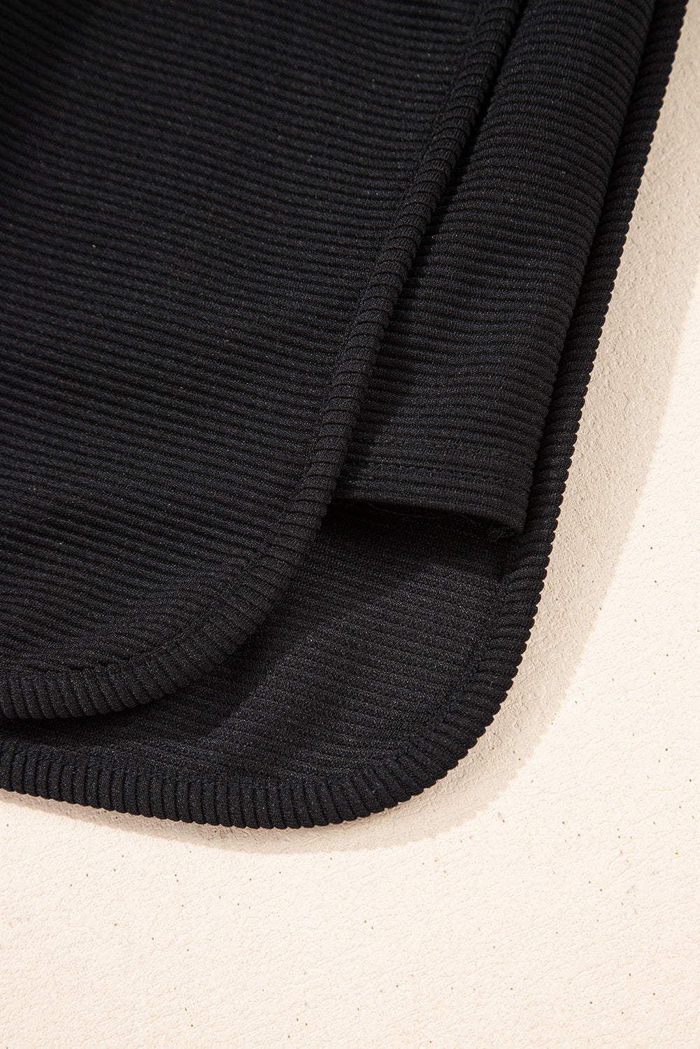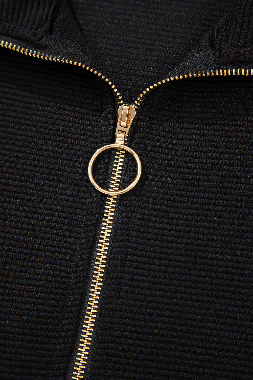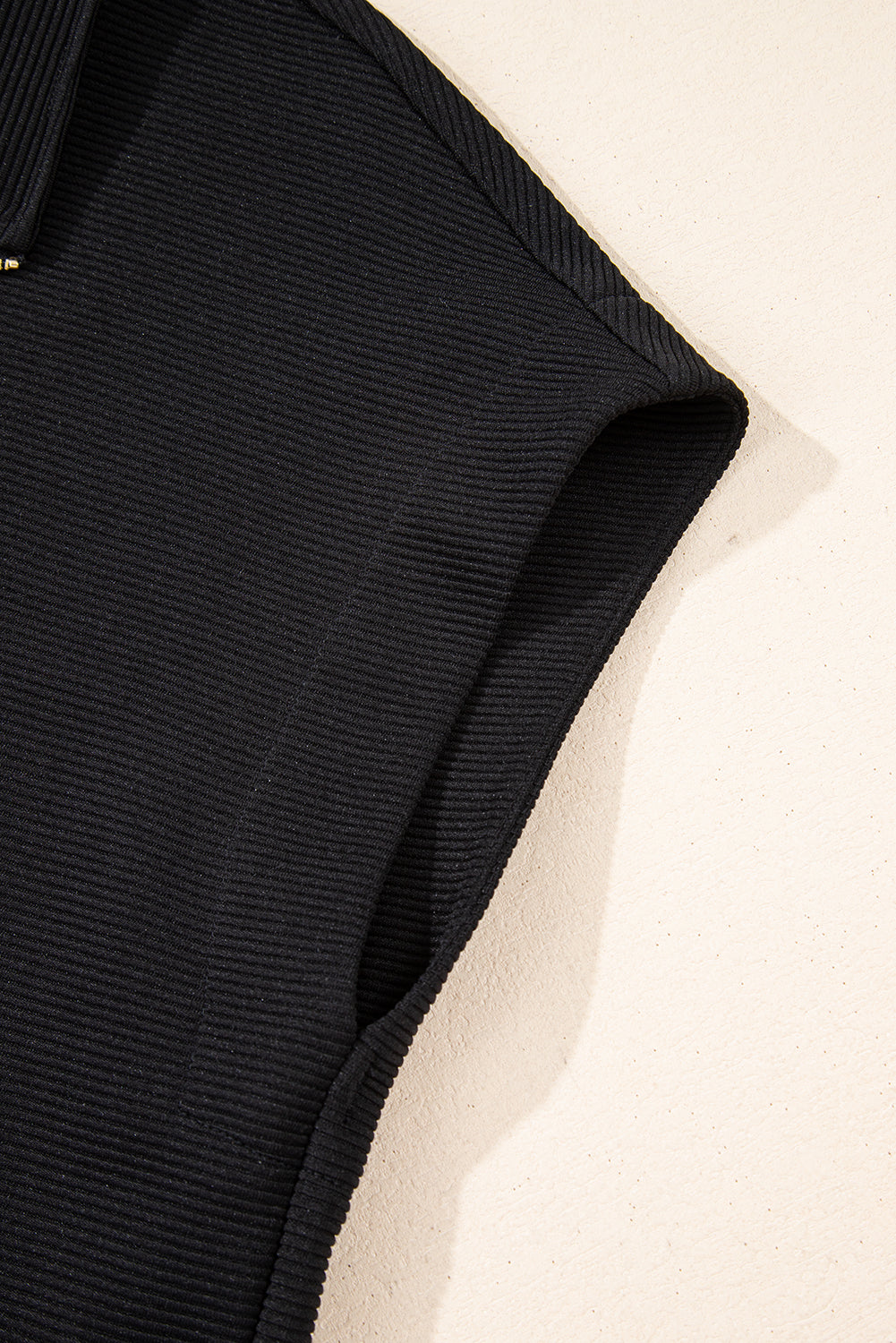 Black Textured Quarter Zip Kangaroo Pocket Top Drawstring Shorts Set