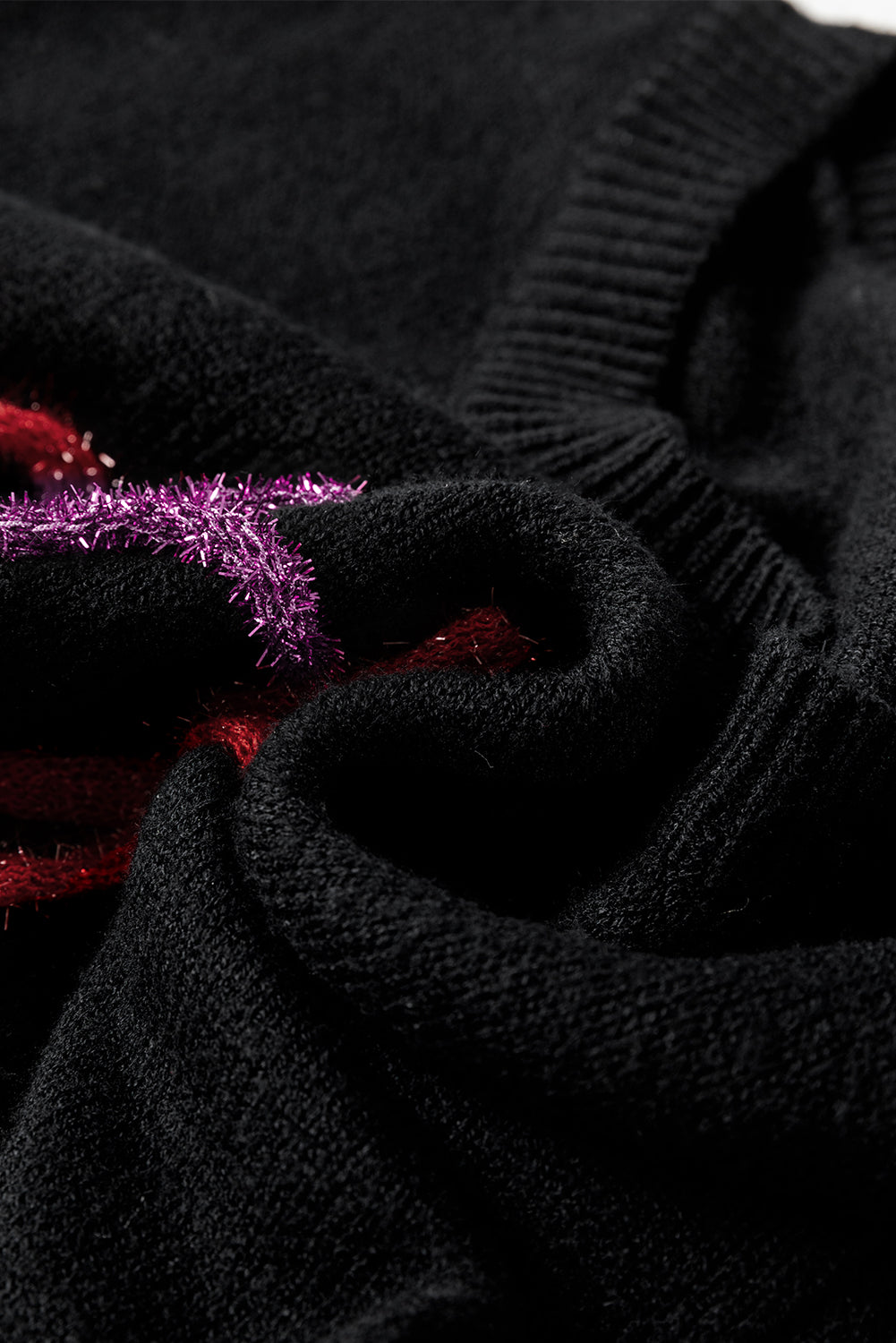Black Tinsel Merry and Bright Graphic Christmas Sweater