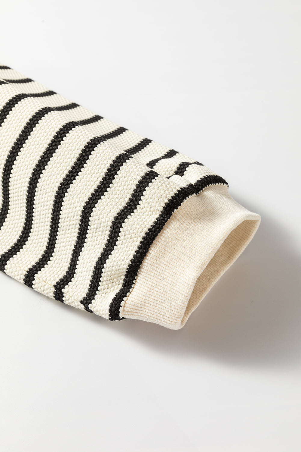 This Black white Striped Big Flower Patched 3/4 Sleeve Top is a stylish and versatile addition to any wardrobe. The bold striped design is complemented by a large floral patch, making it a unique and eye-catching piece. The 3/4 sleeves provide both coverage and comfort, making it perfect for any occasion.