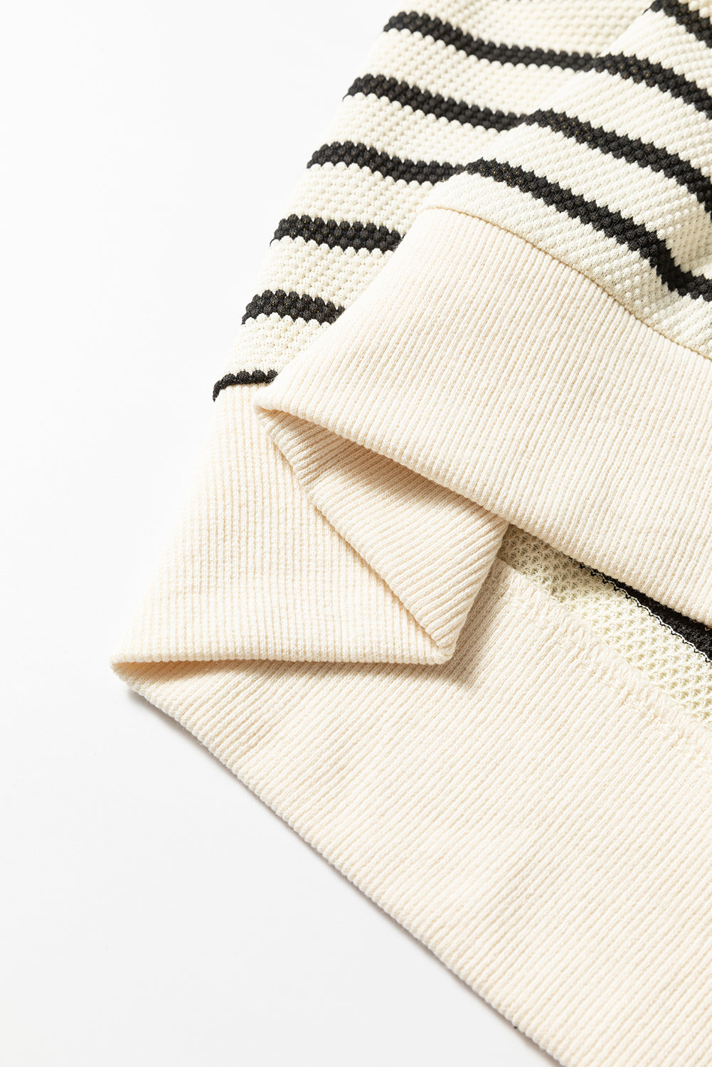 Black white Striped Big Flower Patched 3/4 Sleeve Top