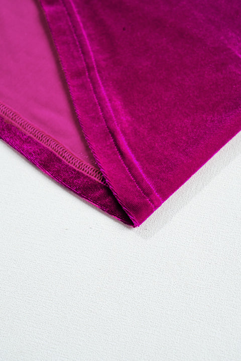 Bright Pink Plus Size Velvet Chest Pocket Drop Shoulder Shirt