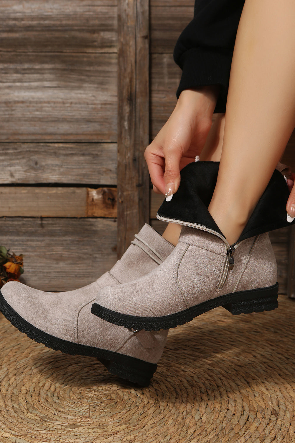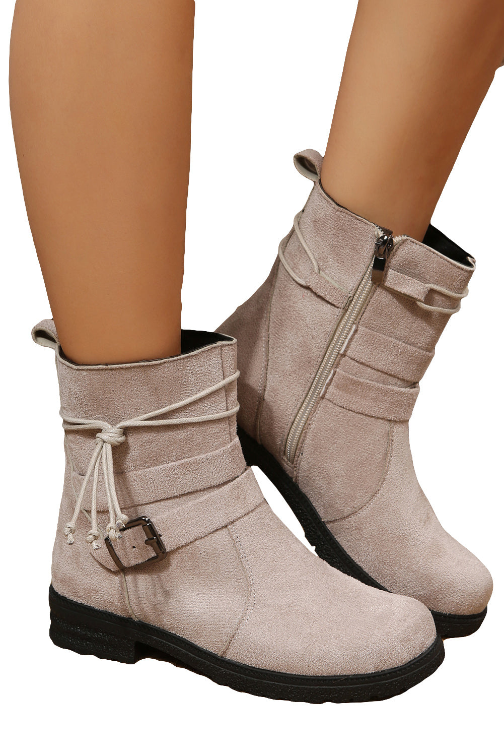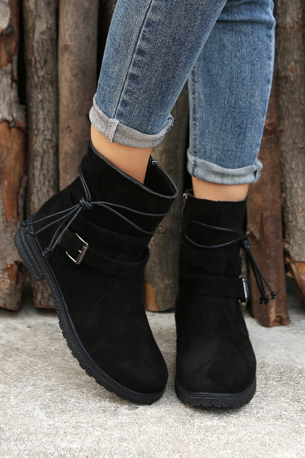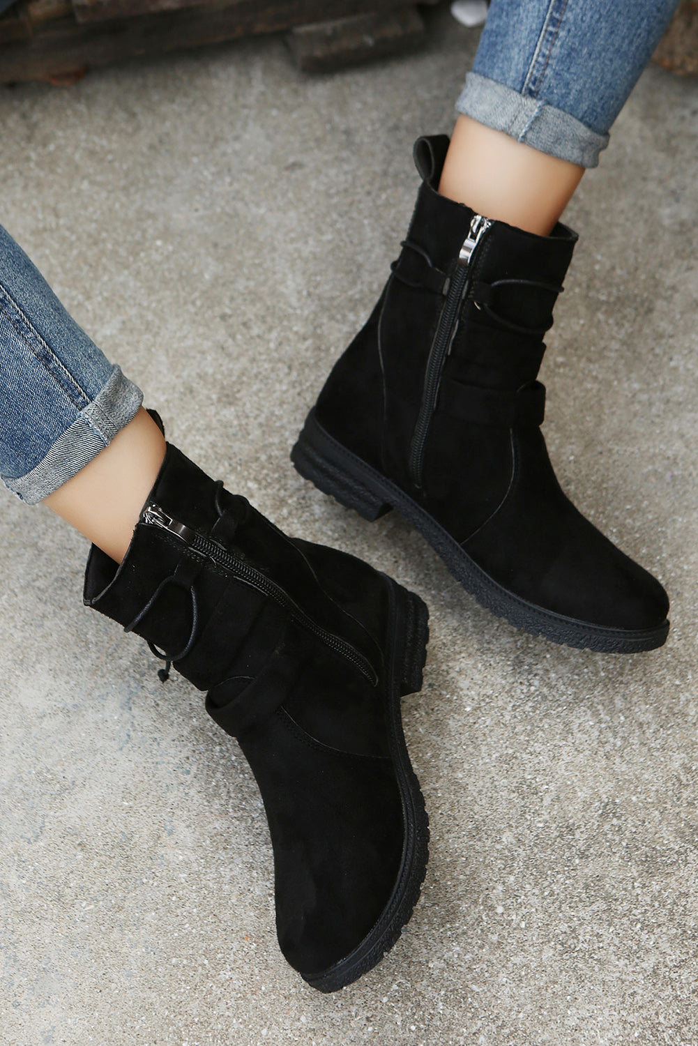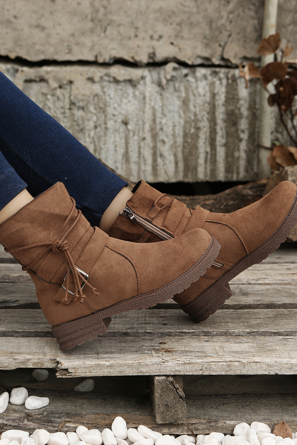 Botines con tiras y hebilla con cremallera de gamuza sintética marrón