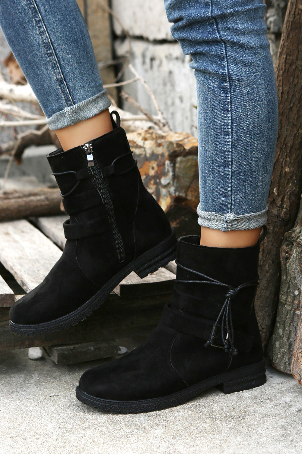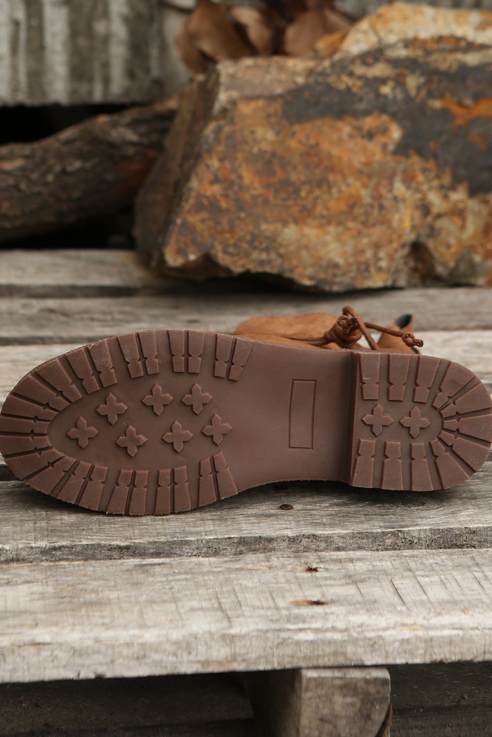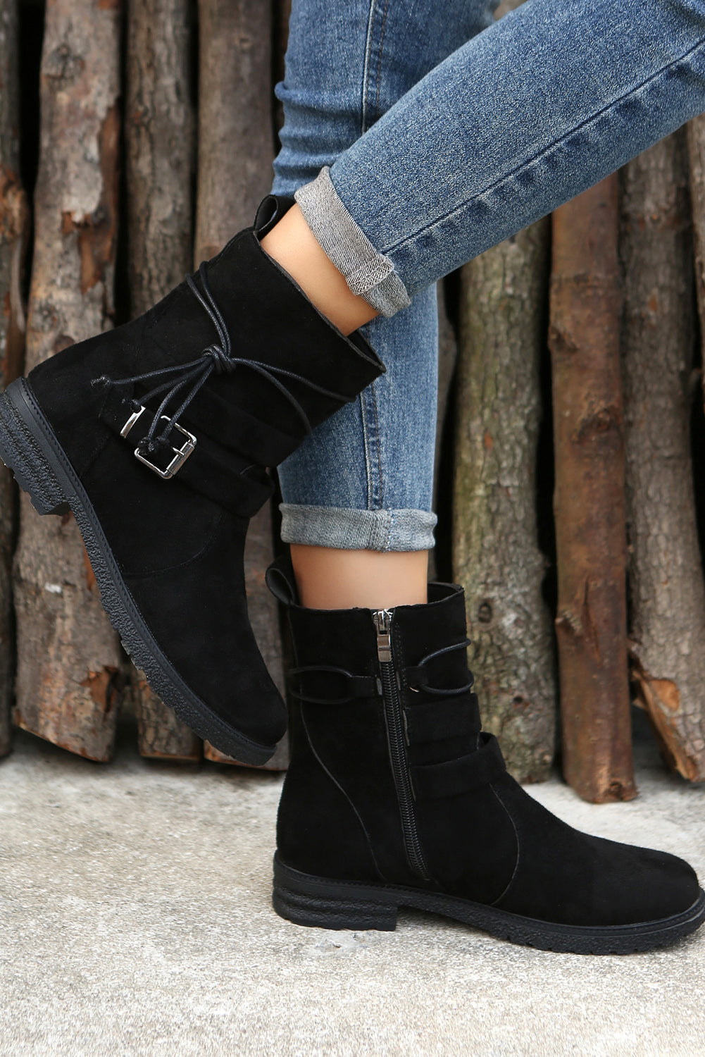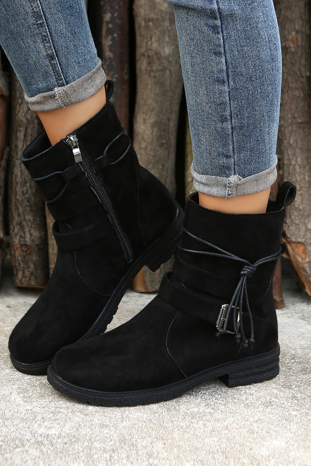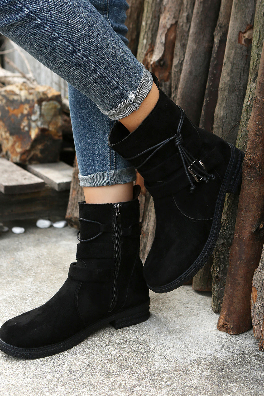 Botines con tiras y hebilla con cremallera de gamuza sintética marrón
