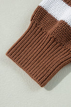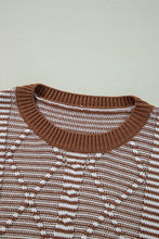 Brown Stripe Geometric Textured Drop Shoulder Sweater