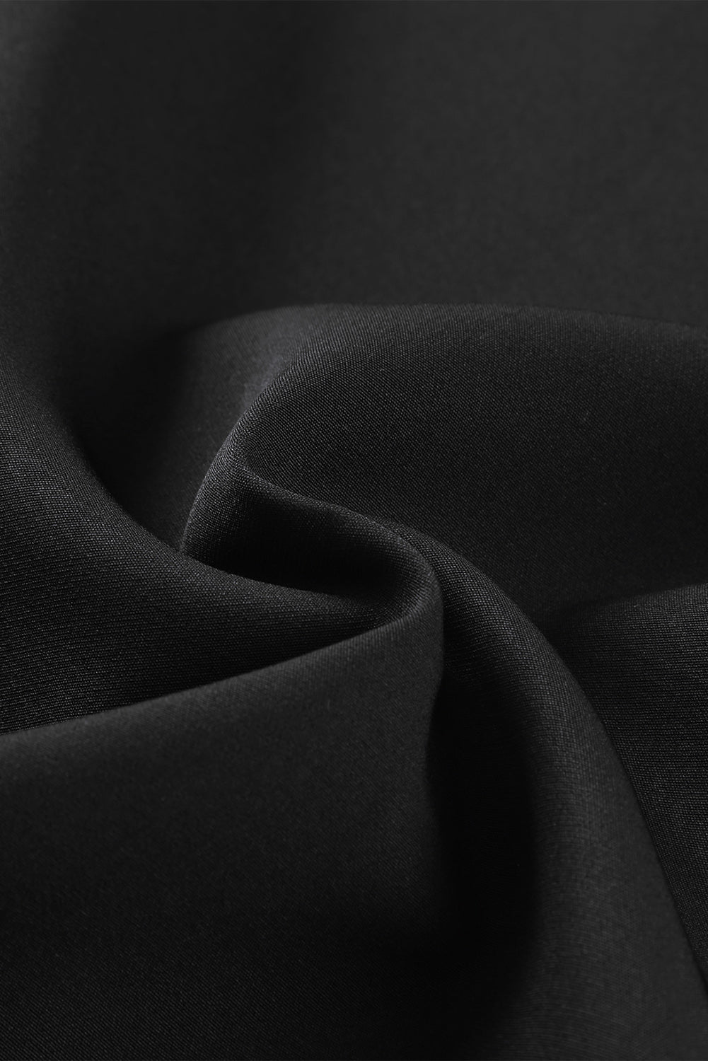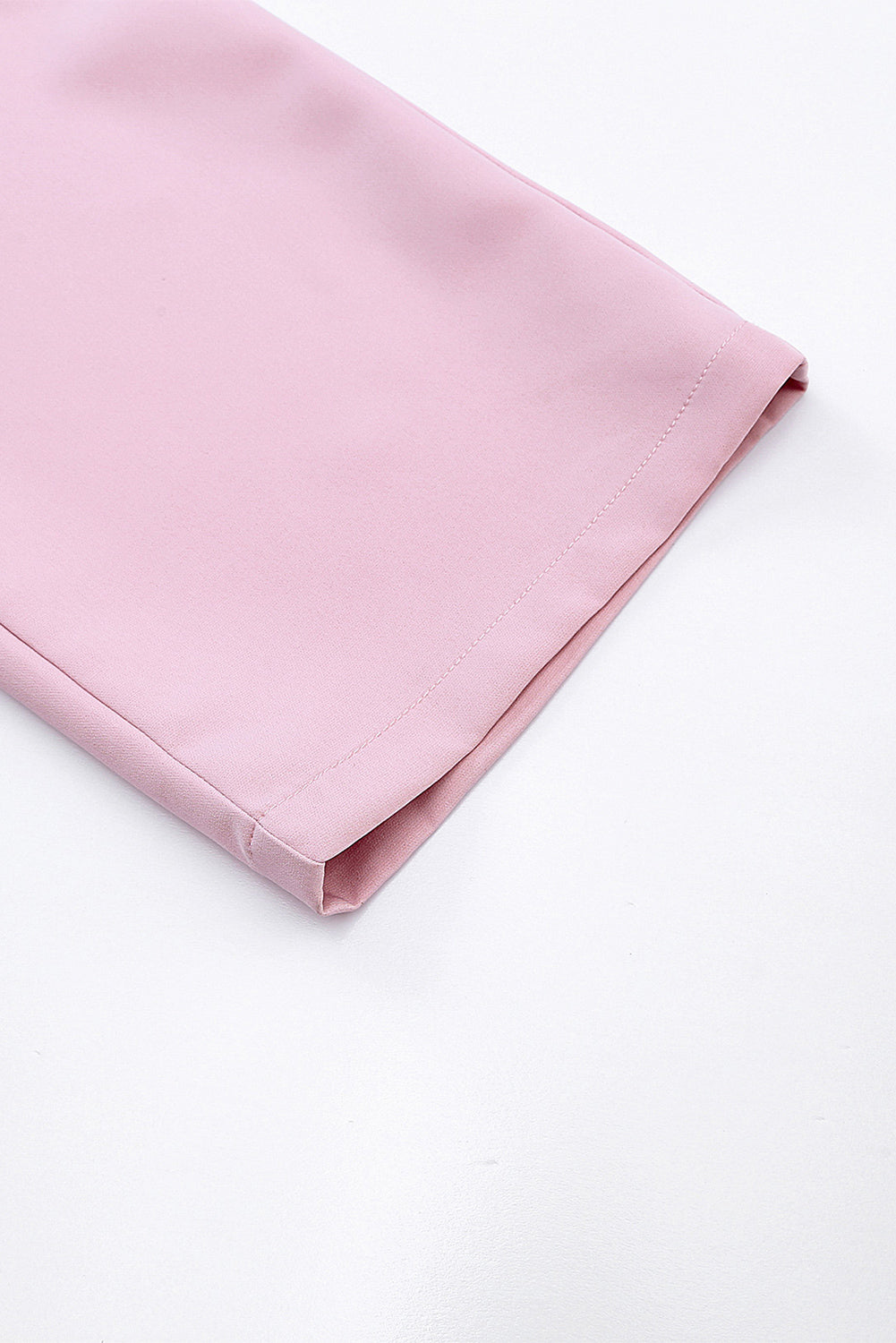 - La cintura está ceñida con un lazo, creando una silueta definida que es a la vez cómoda y elegante.