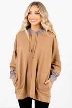 Camel Contrast Hood Patchwork Pocketed Baggy Sweatshirt