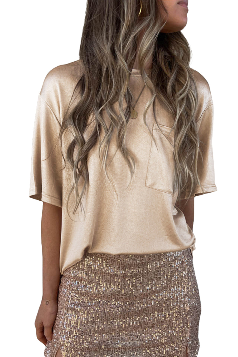Camiseta holgada de manga corta con bolsillo en el pecho