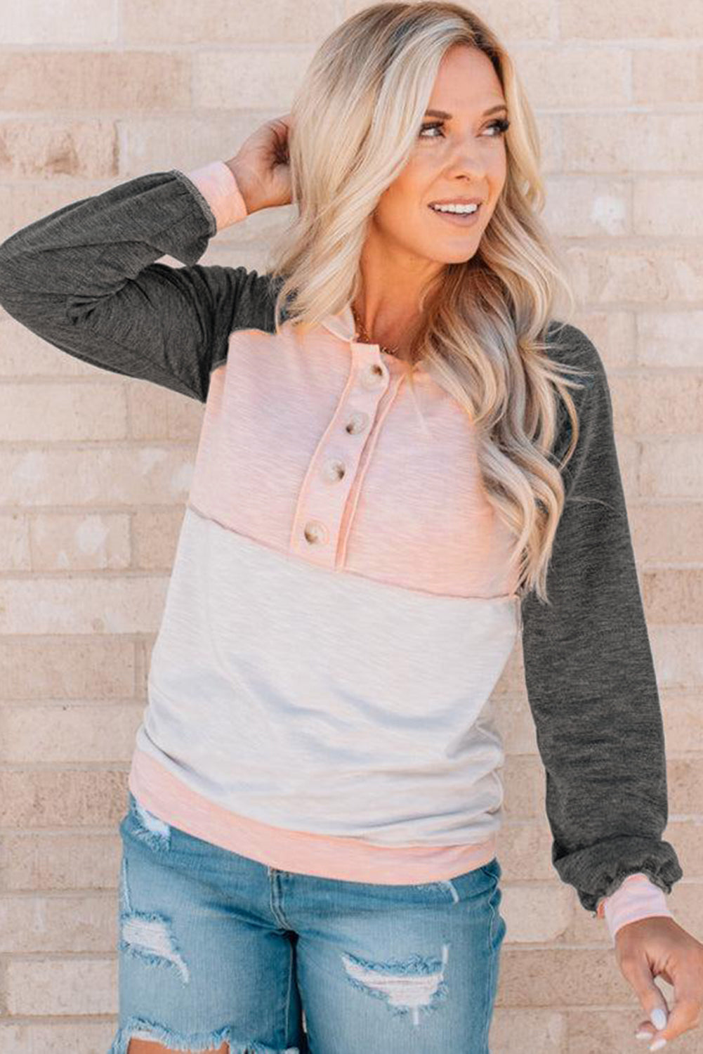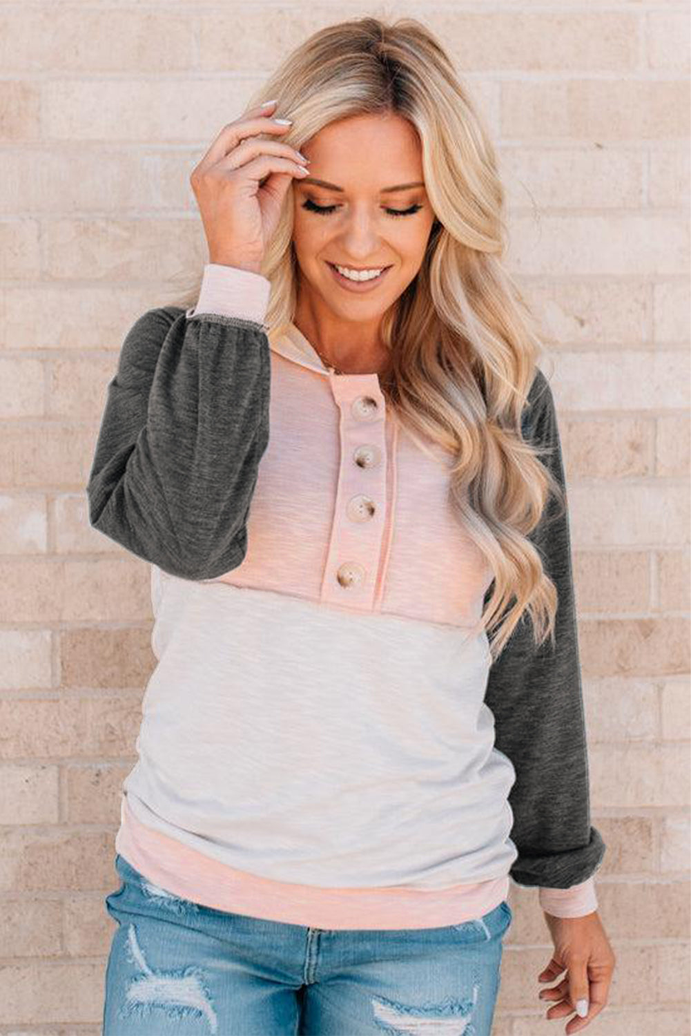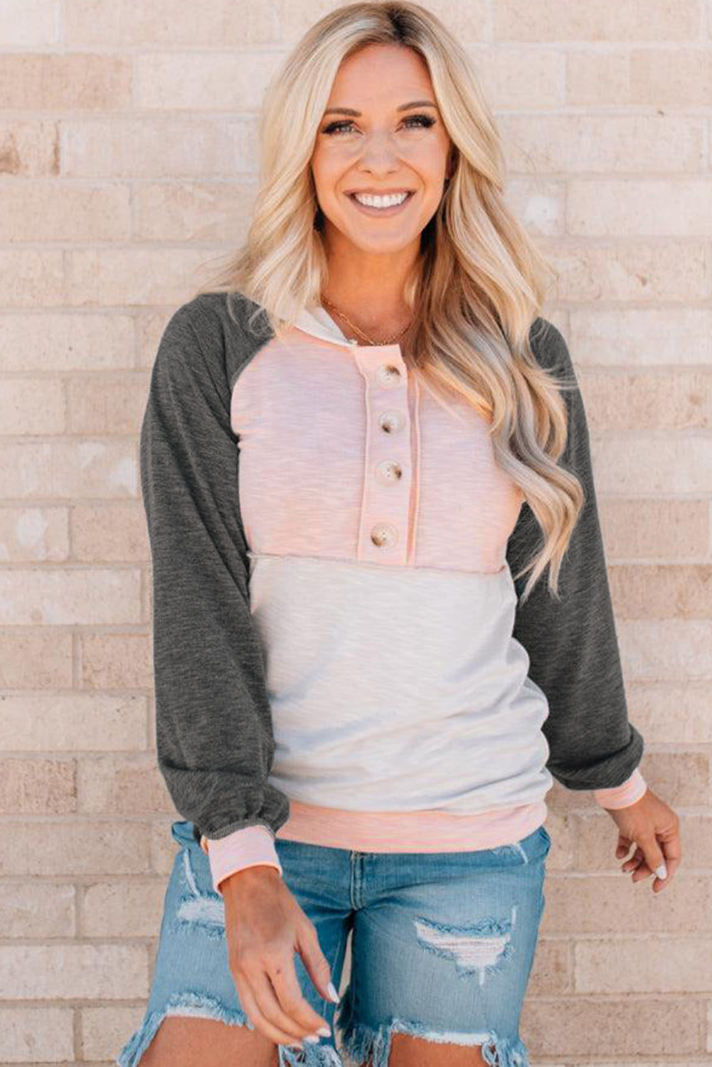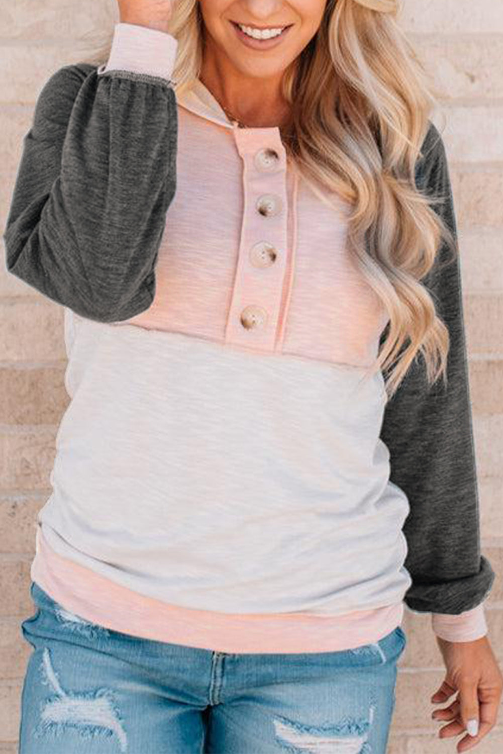 Sudadera con capucha y detalles de botones en bloques de color