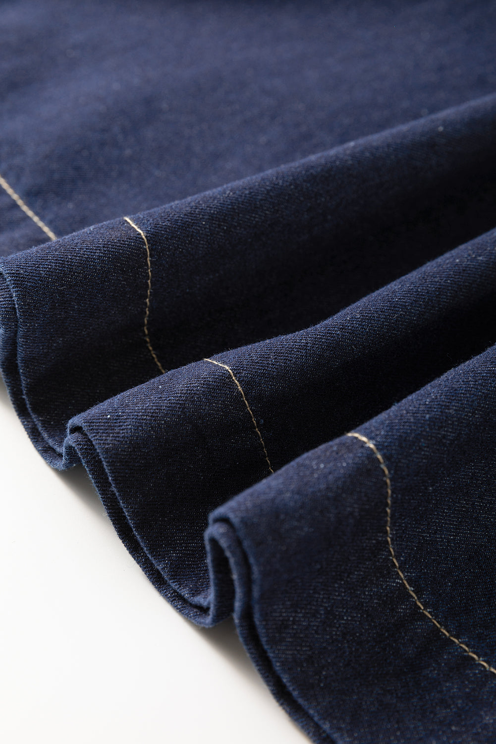 Expertly crafted in a bold, dirty blue denim, this dress features a zipped up bodice and collared neckline, with short puff sleeves for a touch of playfulness. Made with a flattering fit and versatile design, this dress is perfect for both casual and dressy occasions.