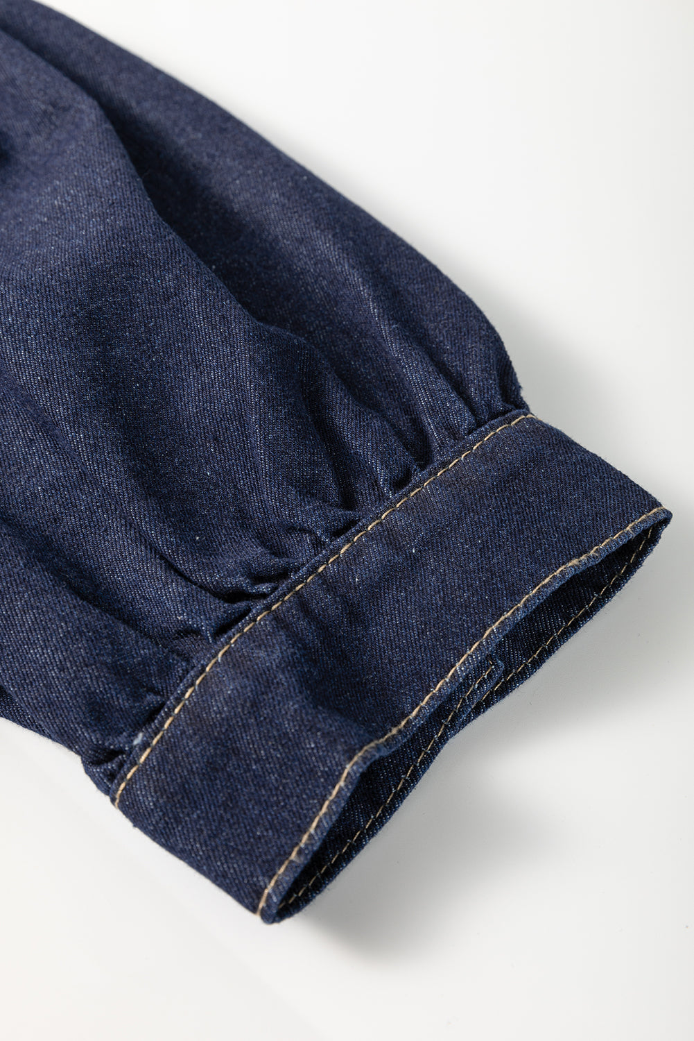 Dirty blue Zipped up Bodice Collared Short Puff Sleeve Denim Dress