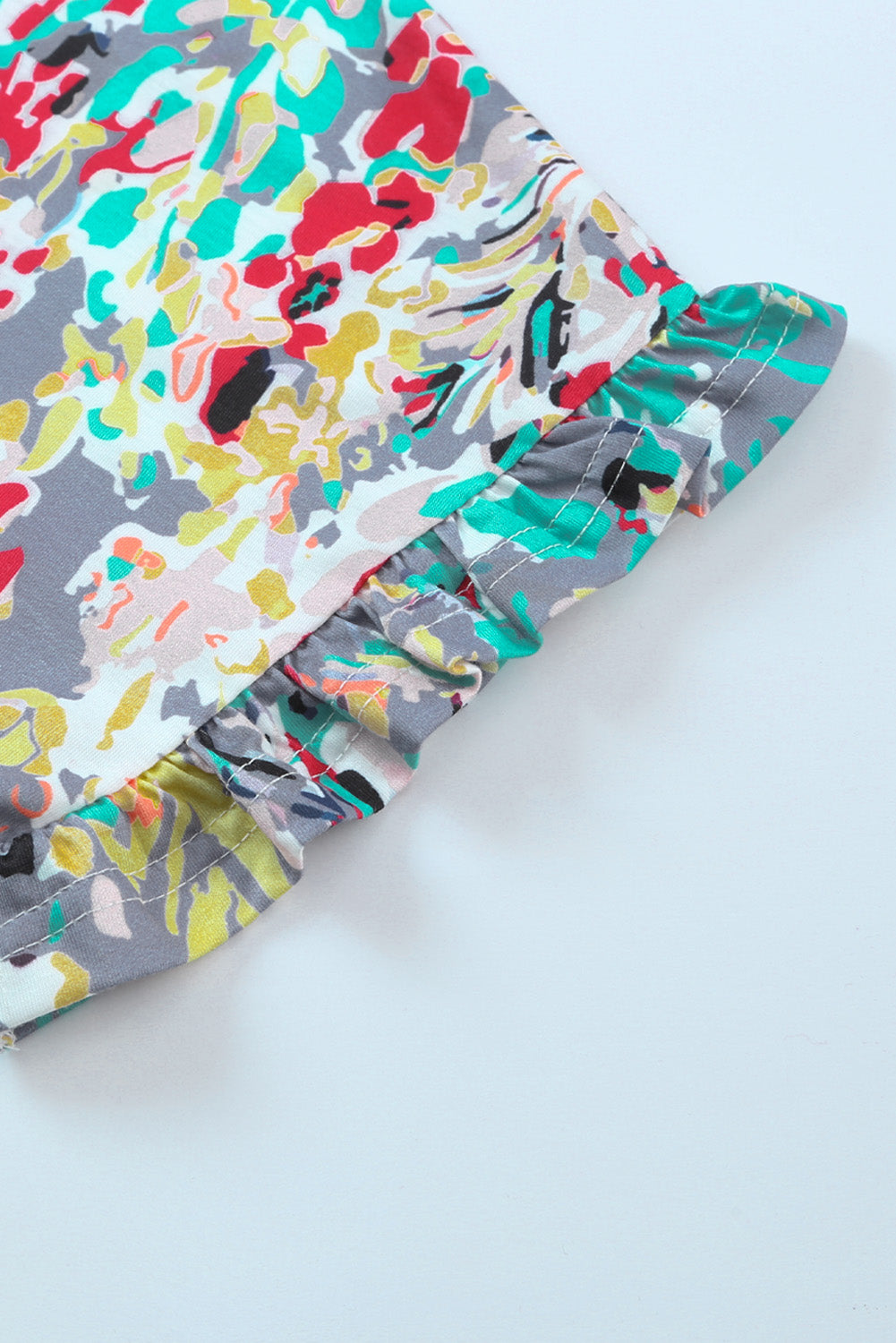 - Esta blusa para mujer presenta un hermoso estampado floral por todas partes y un ribete de volantes para darle un toque femenino.