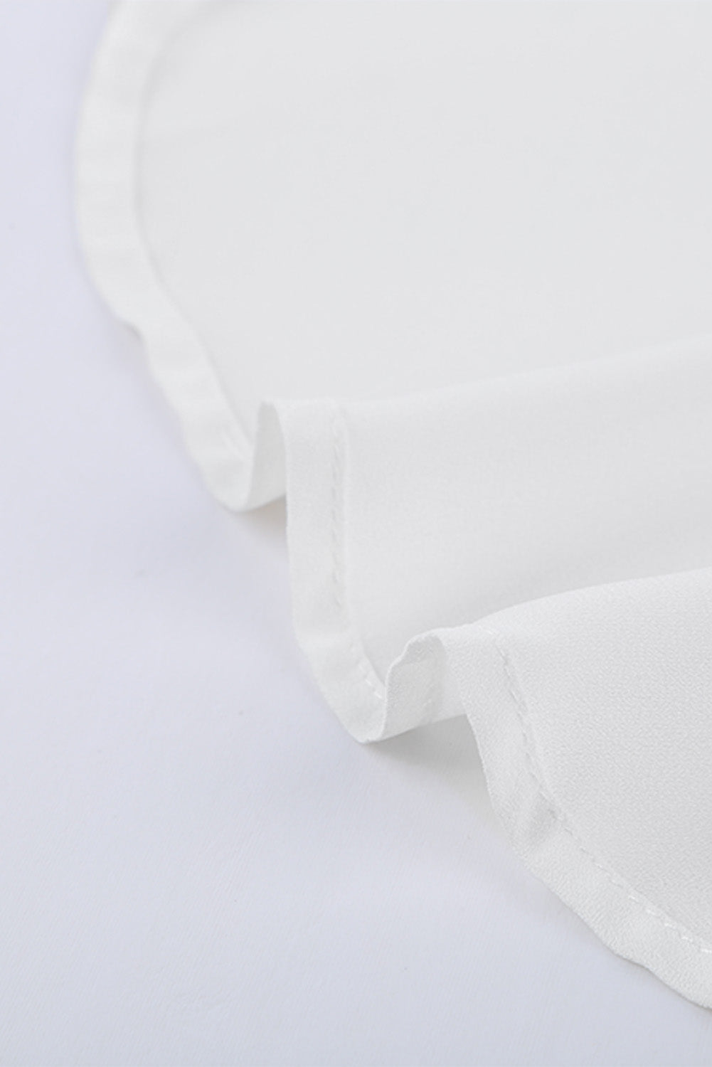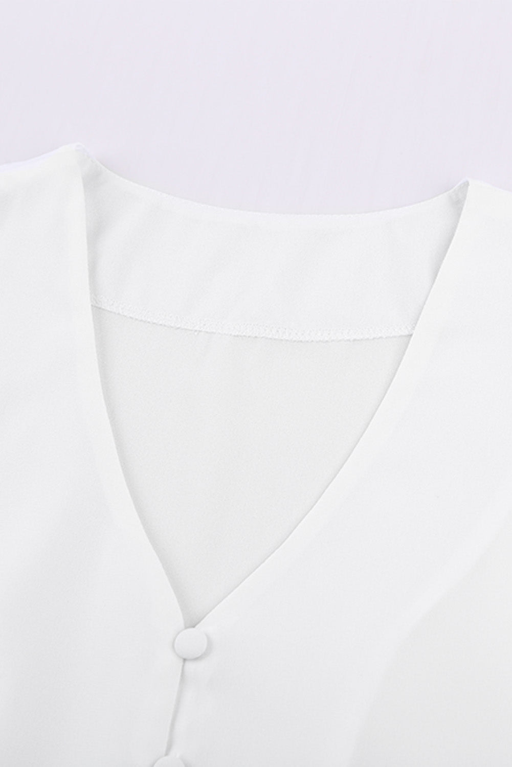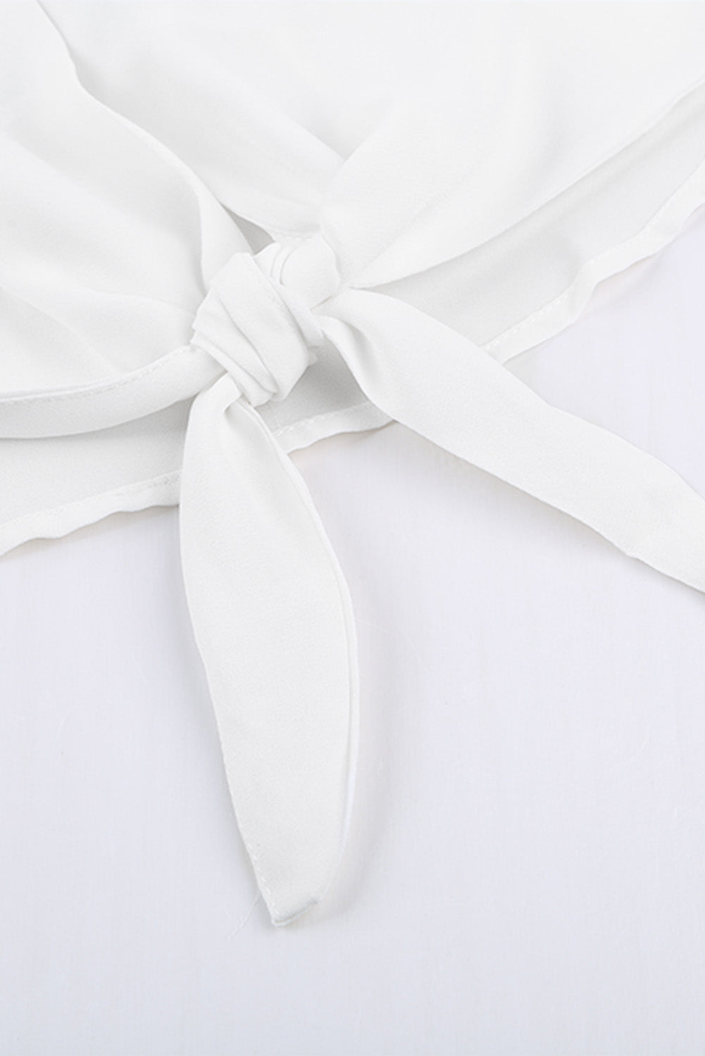 • Manga corta con vuelo, corpiño ajustado y elegante lazo en el dobladillo