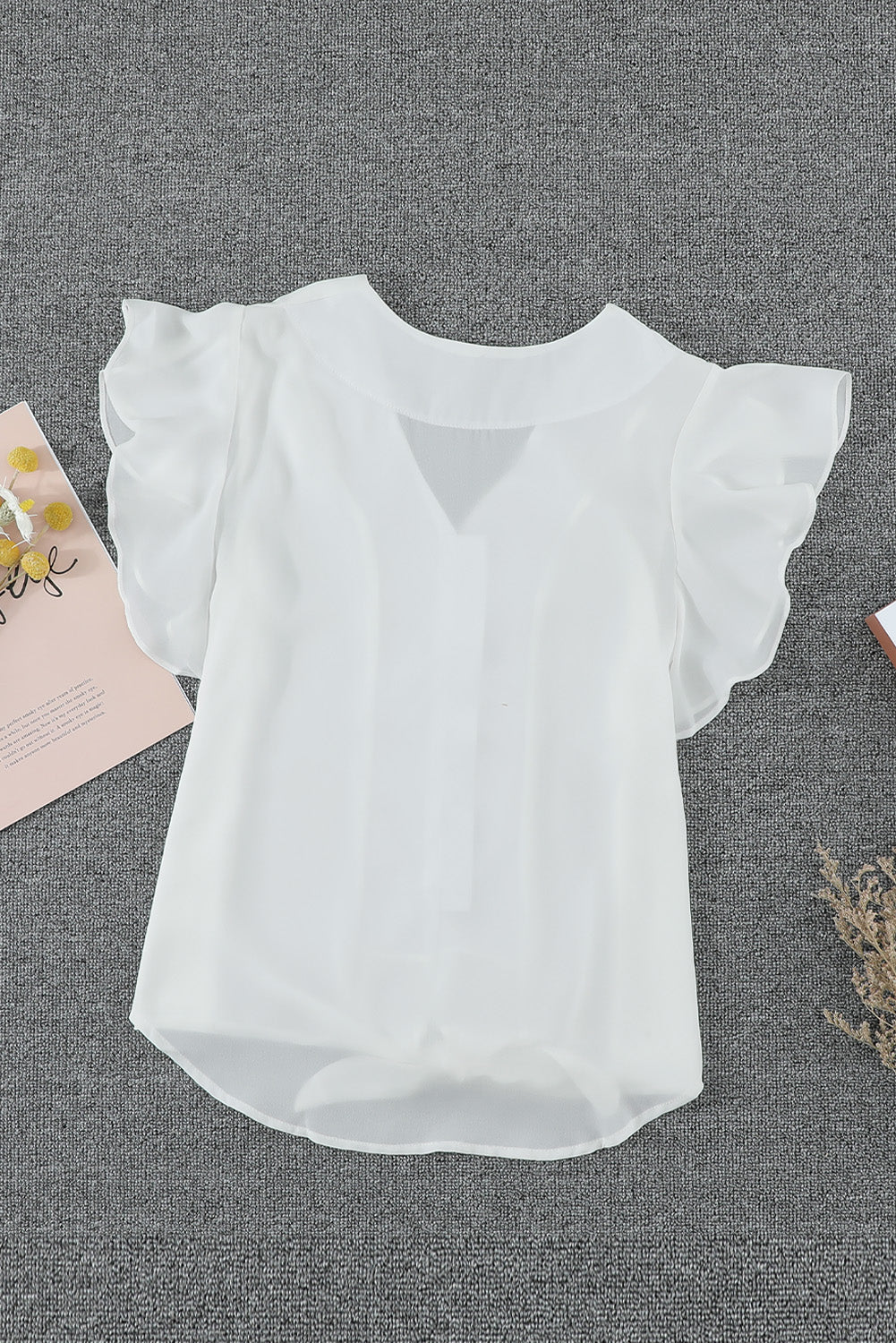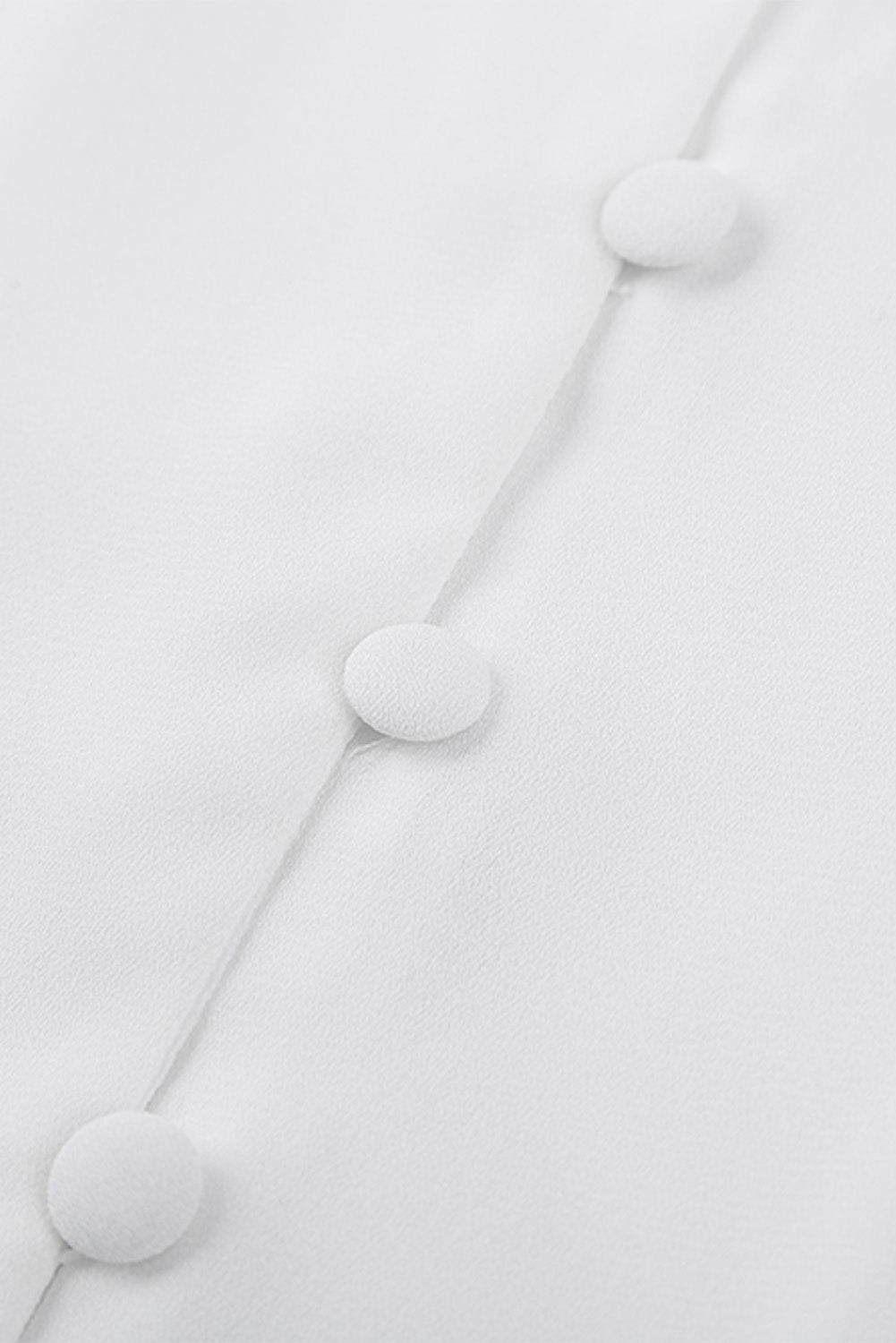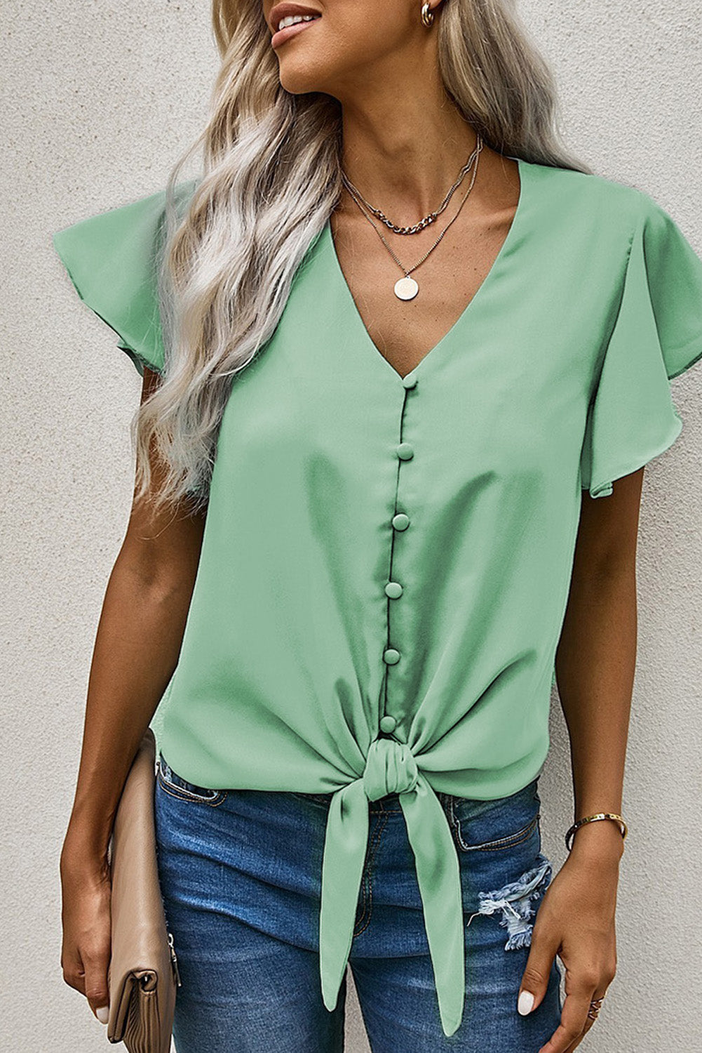 • Manga corta con vuelo, corpiño ajustado y elegante lazo en el dobladillo